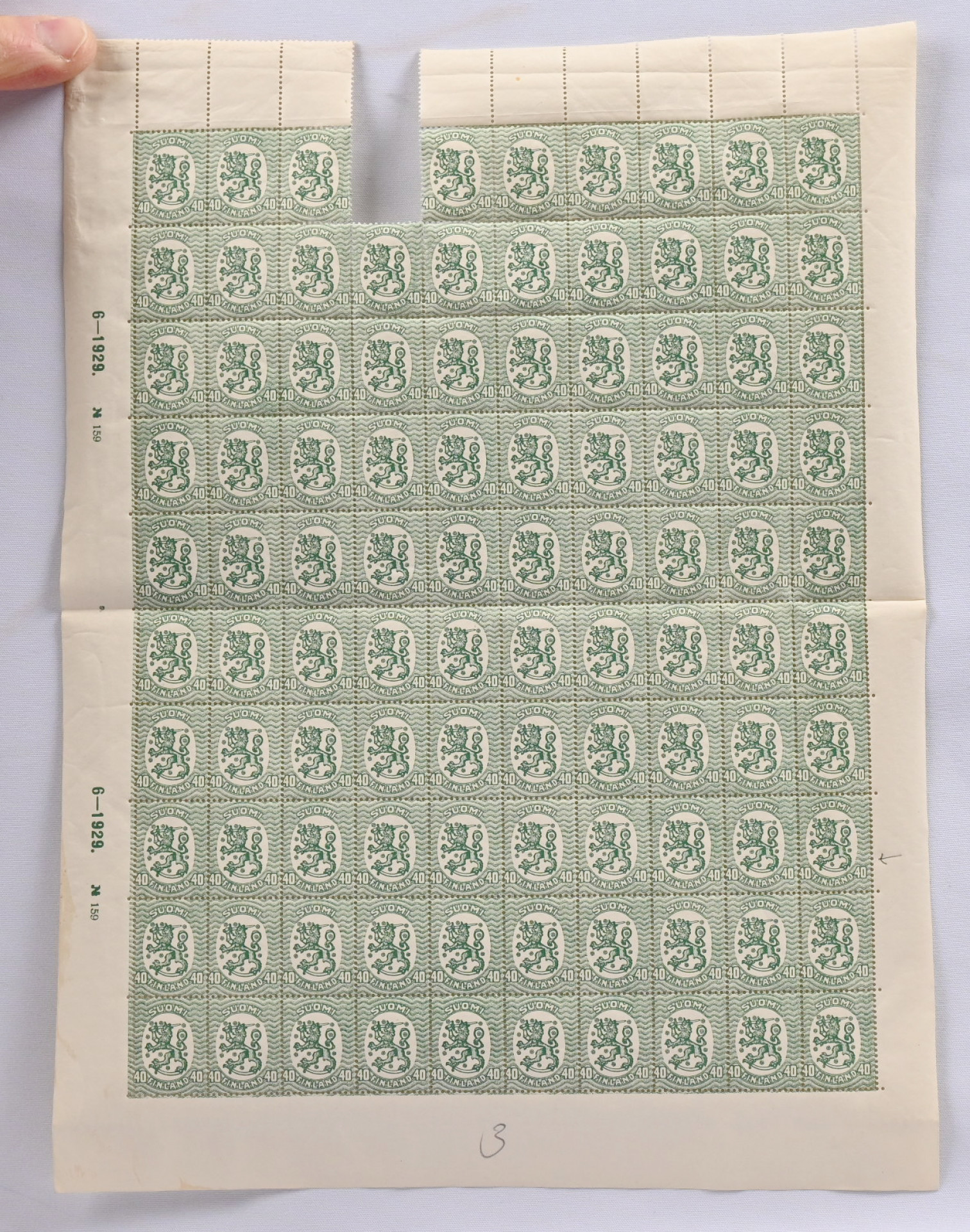 1927 40 penniä W4 arkki (99), josta yksi merkki irroitettu, harvinainen kokonaisuus