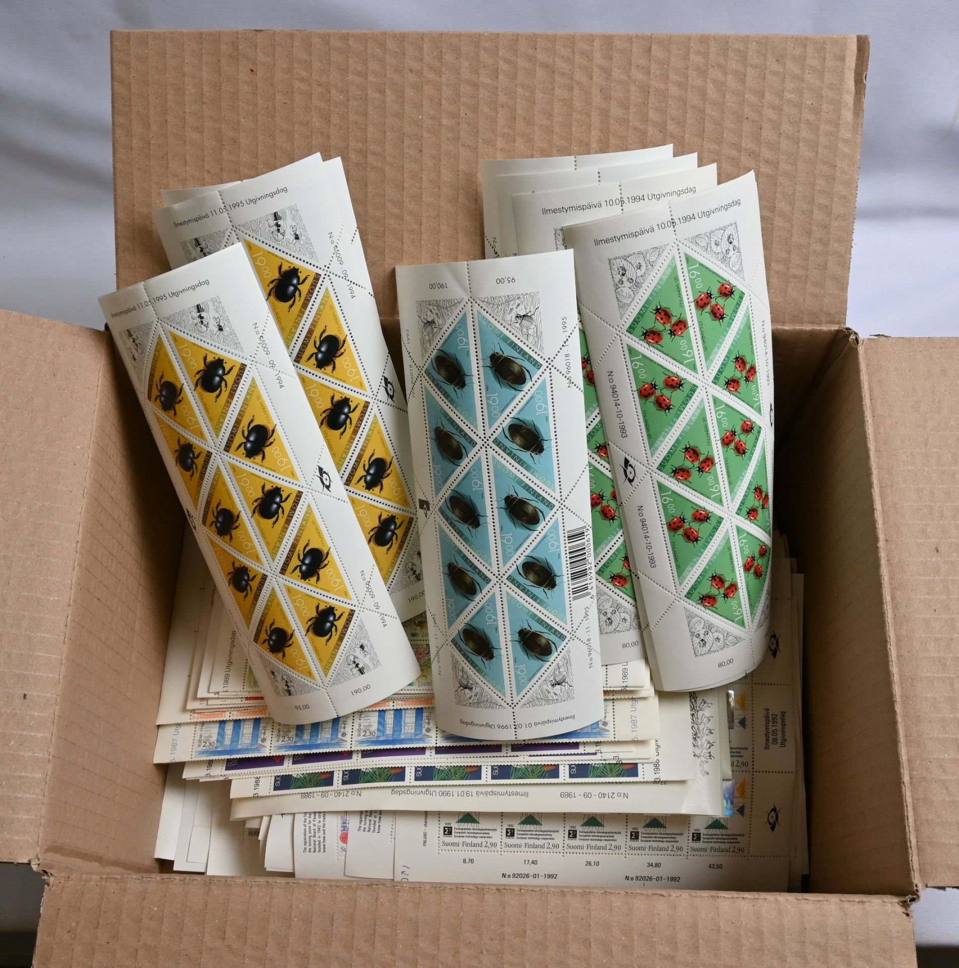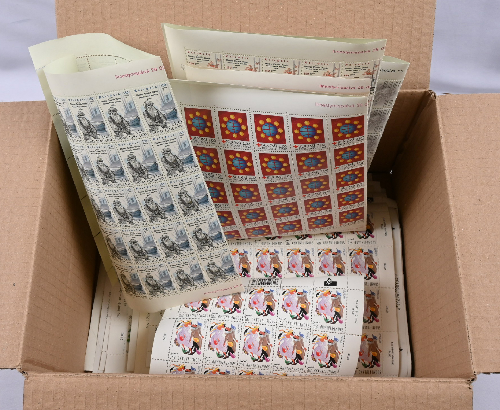 1980-luvulta 2000-luvun alkuun ISO arkkierä noin 350 kpl!!! Todella hyvä erä! Monia samojakin arkkeja. Mukana esim. kolmiomerkkiarkkeja 11 kpl jne