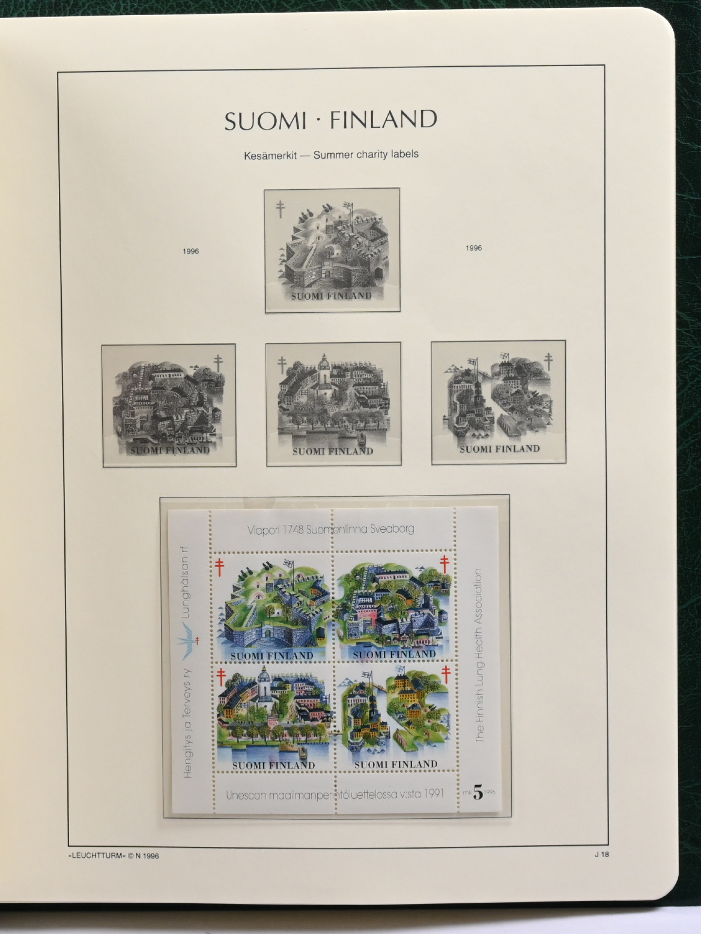 1908 alkaen kokoelma taskullisilla sivuilla mm. 1955 10-rivilä hammastamattomana kahdessa osassa. Lisäksi ylimääräinen sivusarja mukana