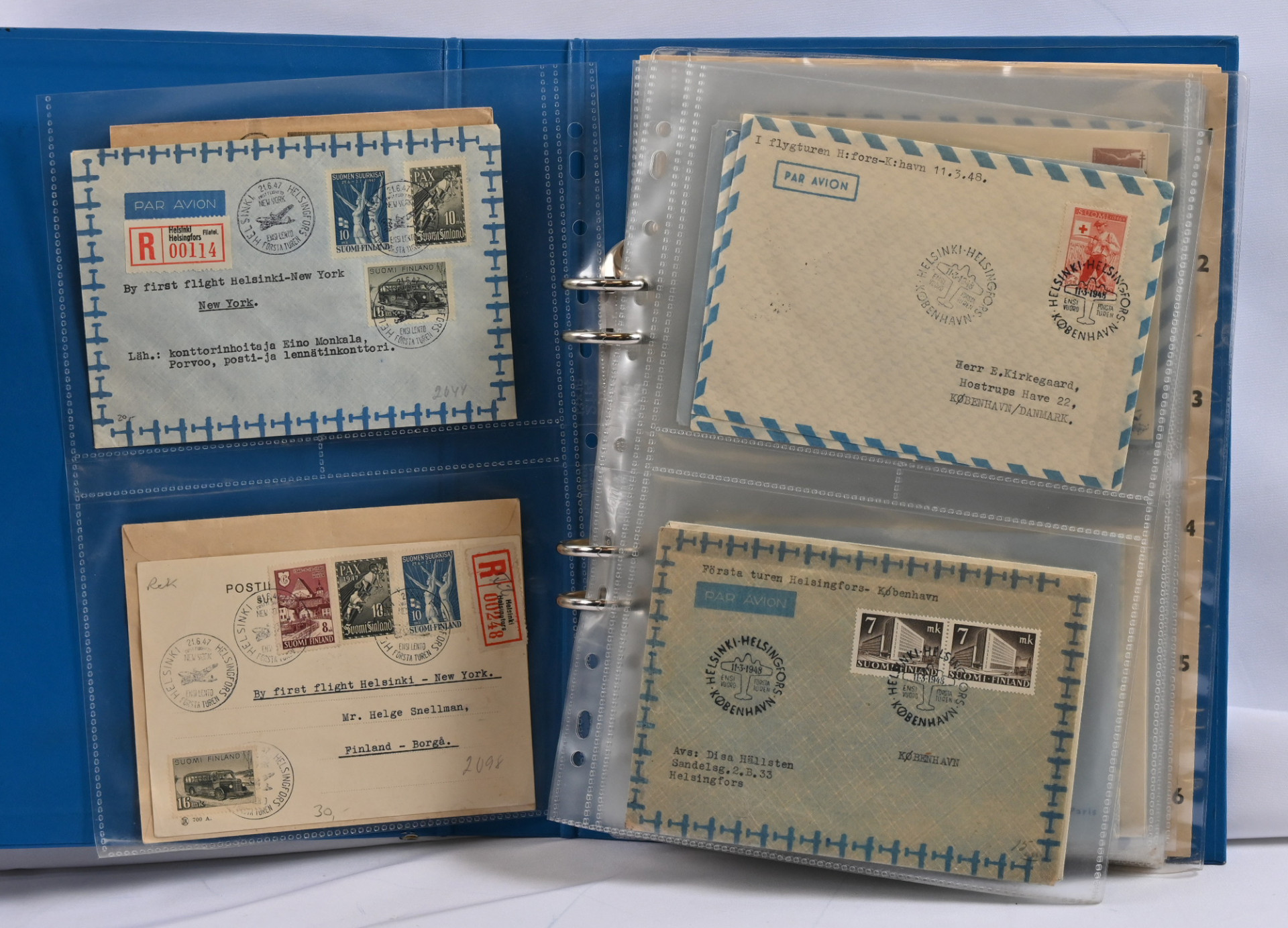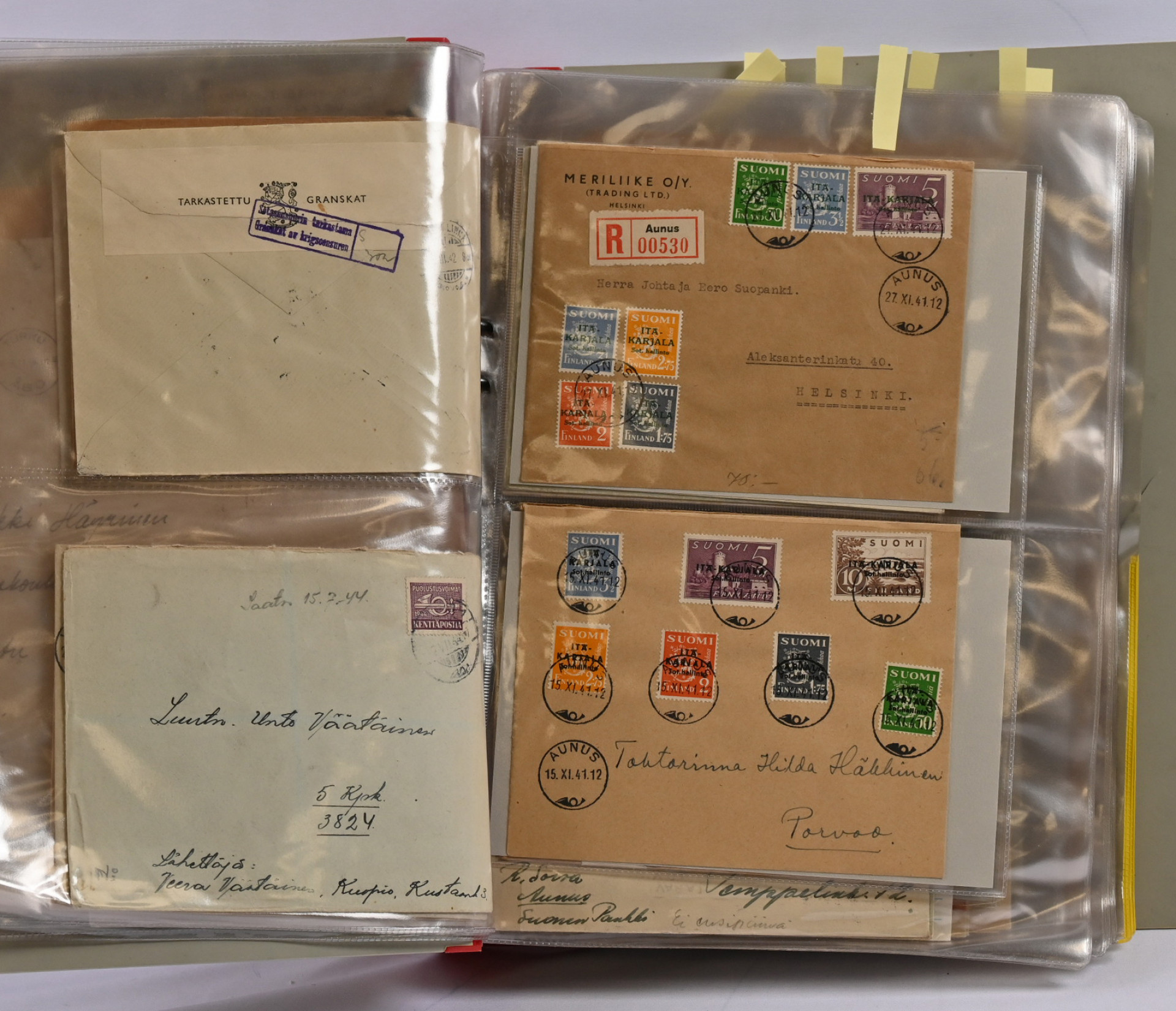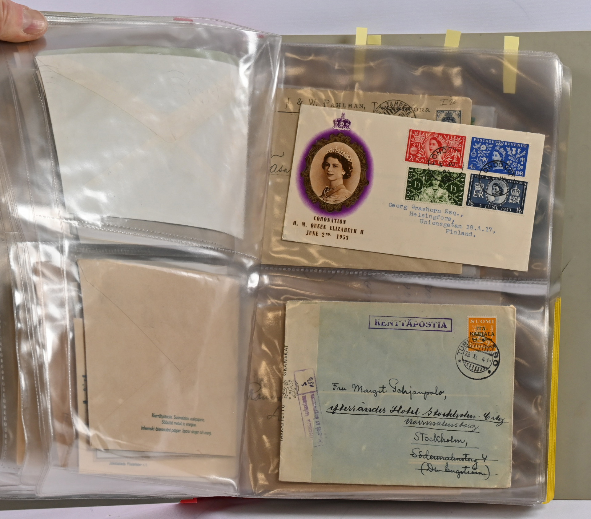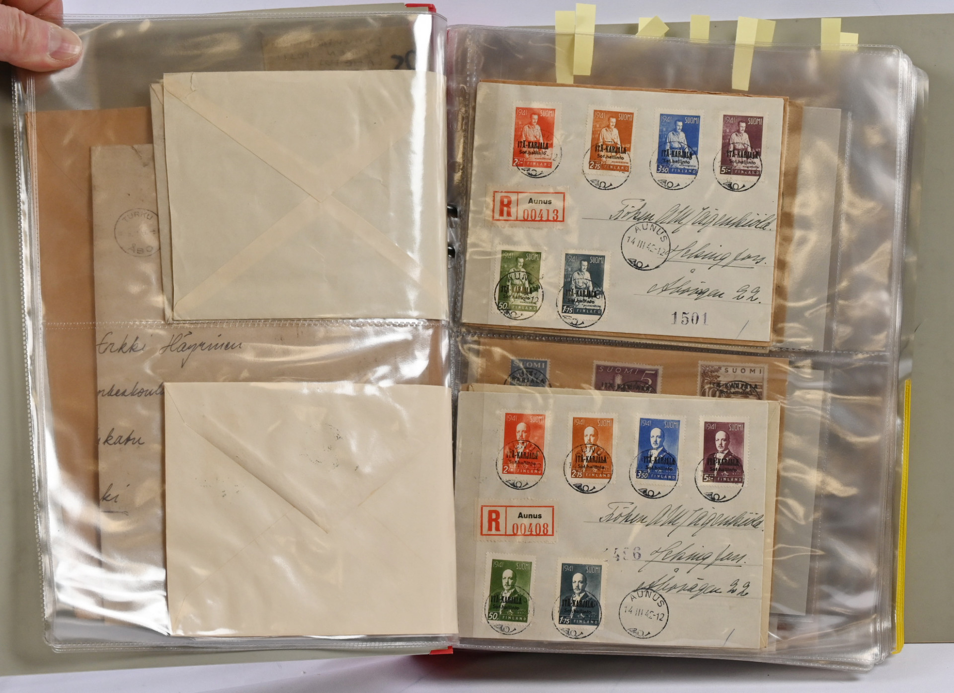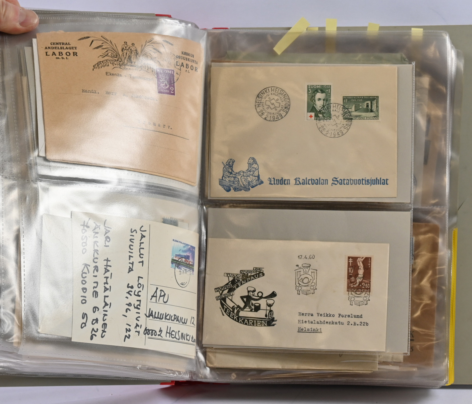 1866 alkaen kiehtova mutta sekalainen erä seitsemässä kansiossa lähetyksiä ja kortteja, myös hiukan ulkomaita. Mukana mm. s/s Suursaari-leimaus, Itä-Karjalaa, pari isohampaiskirjettä jne.