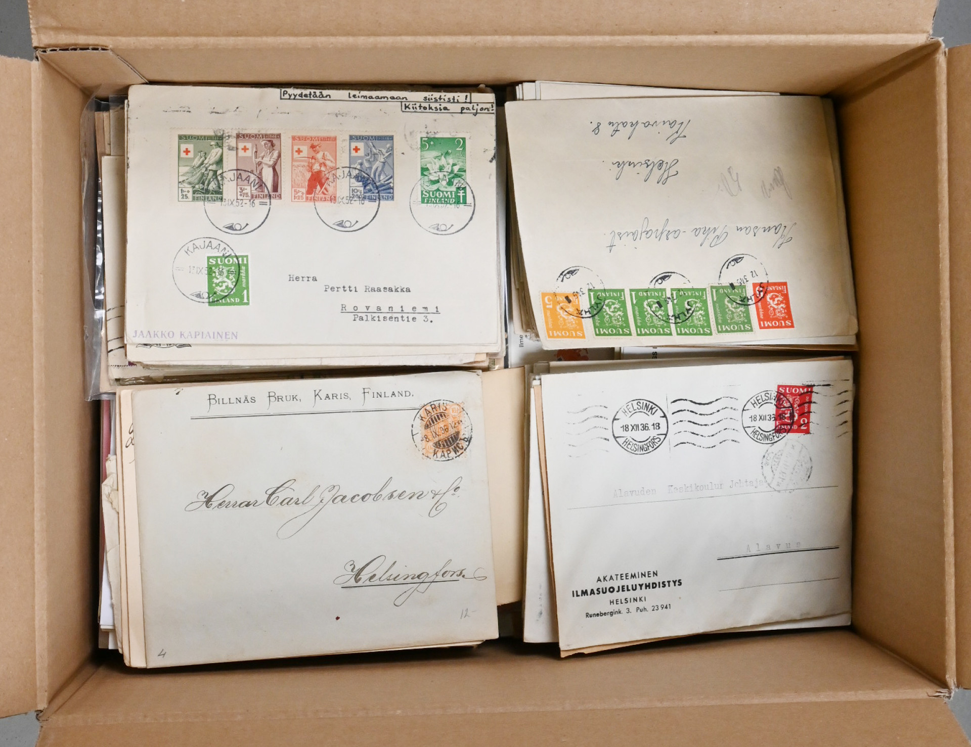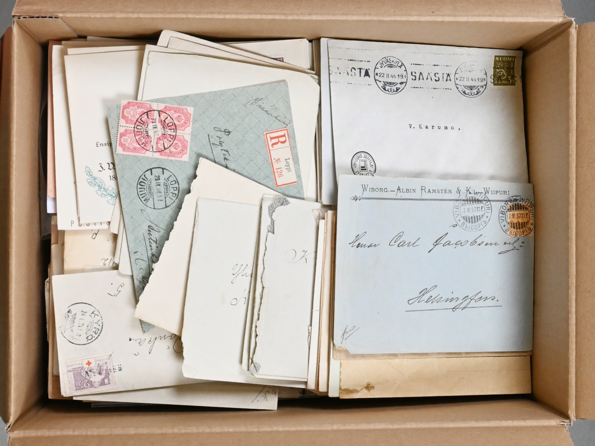 Suomalaisia postilähetyksiä monipuolinen erä 8 KG laatikossa. Vanhaa ja uutta. Tutkittavaa