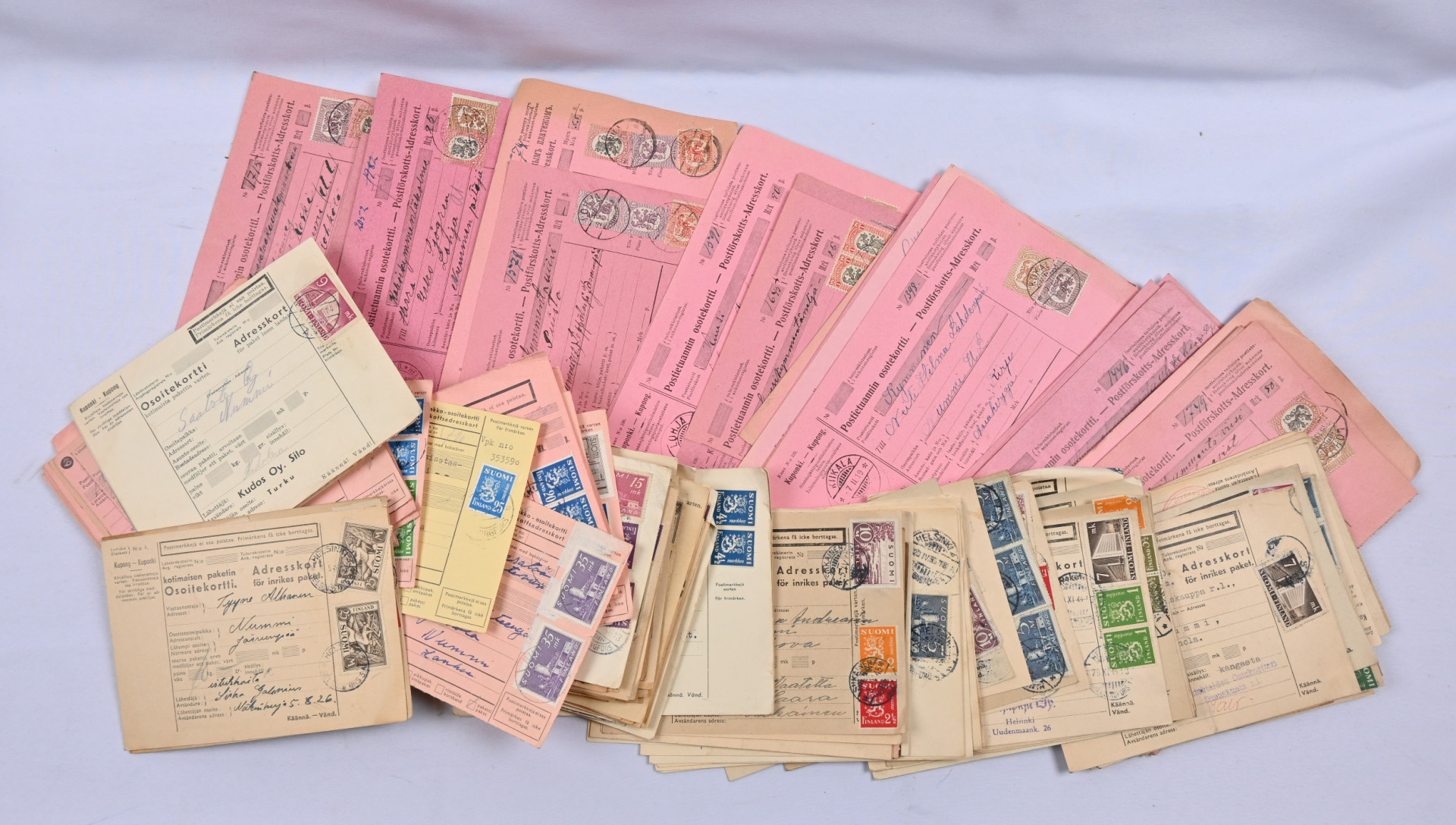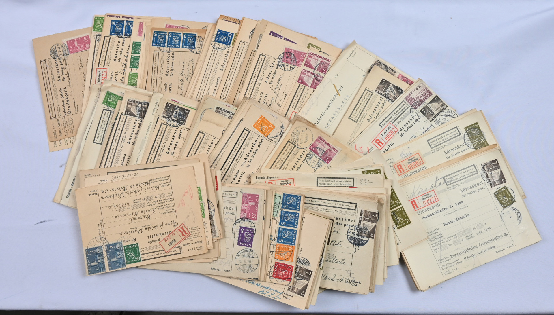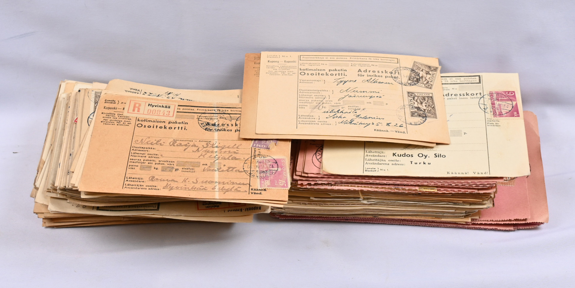 Vanhan postikonttorin arkistoa erä paketti ym korttteja m/17 - m/30 aikakaudelta noin 1,2 KG! Kirjattuja, leimoja sekapostitteita mm. 1918 ym tutkittavaa