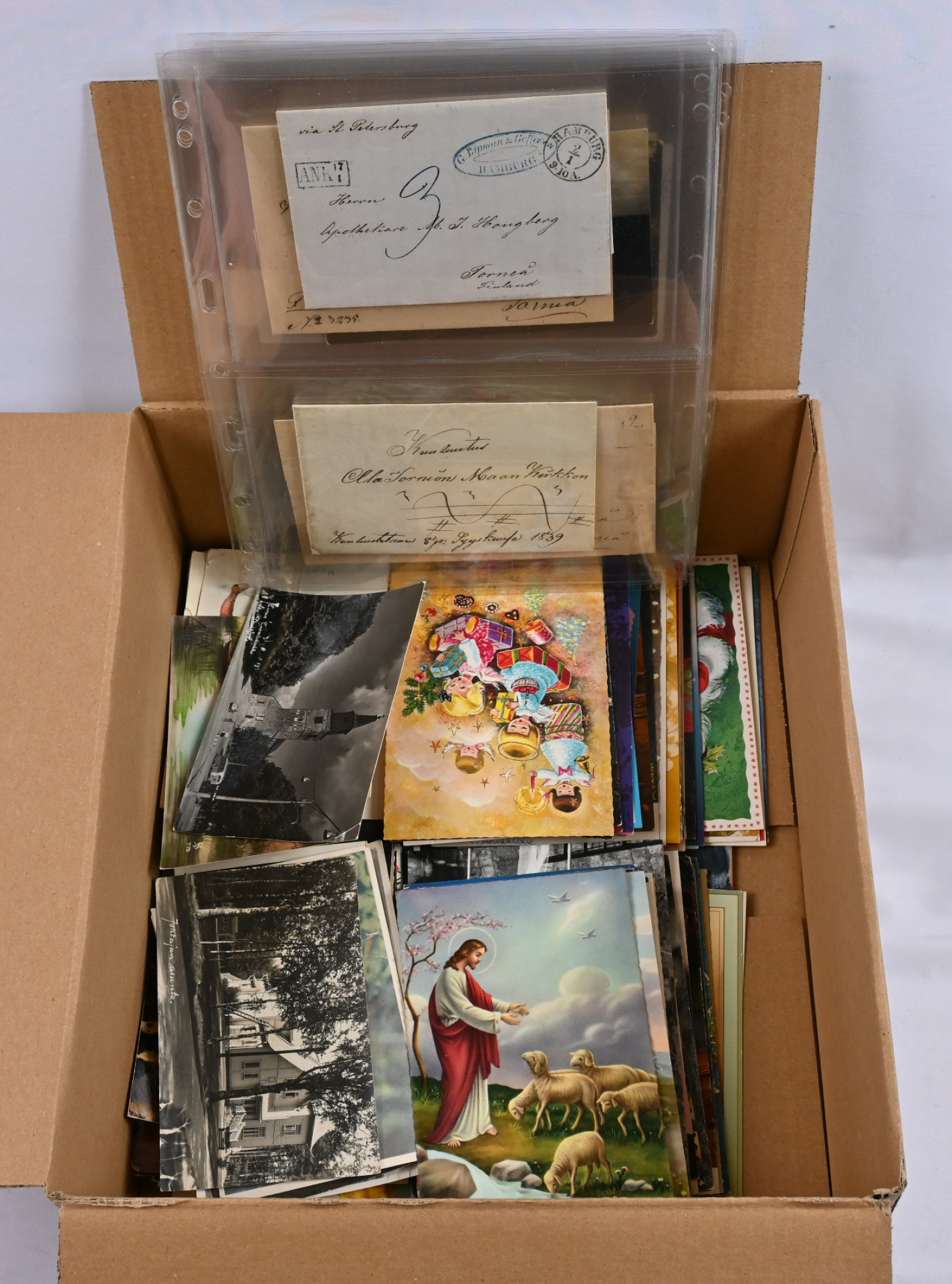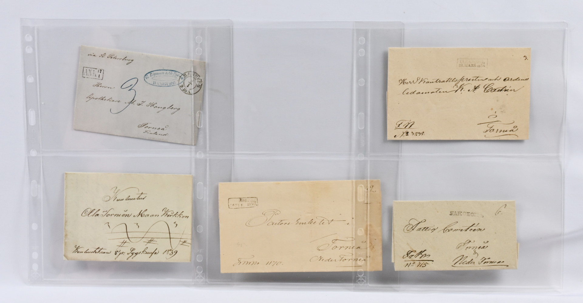 Vanhaa kirjeenvaihtoa erä 1839 alkaen Meanderkirjeellä lisäksi mm. kyrillinen Uleåborg -leimaus jne. Mukana myös uudemman aikakauden kuvakortteja ym