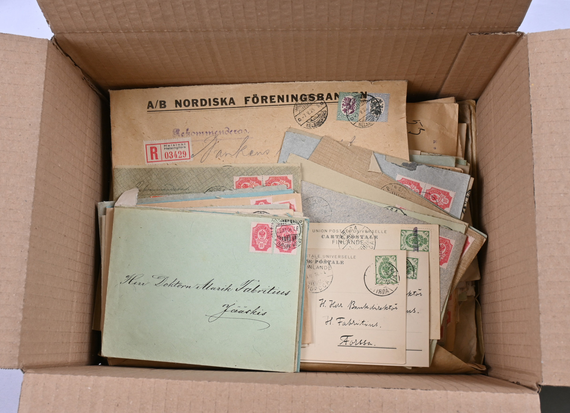1870-luvulta alkaen vanhaa kirjeenvaihtoa kiintoisa erä mm. postipysäkkileimoja, vakuutettua, kuvakortteja ym noin 1,4 KG myös vähän ulkomaita
