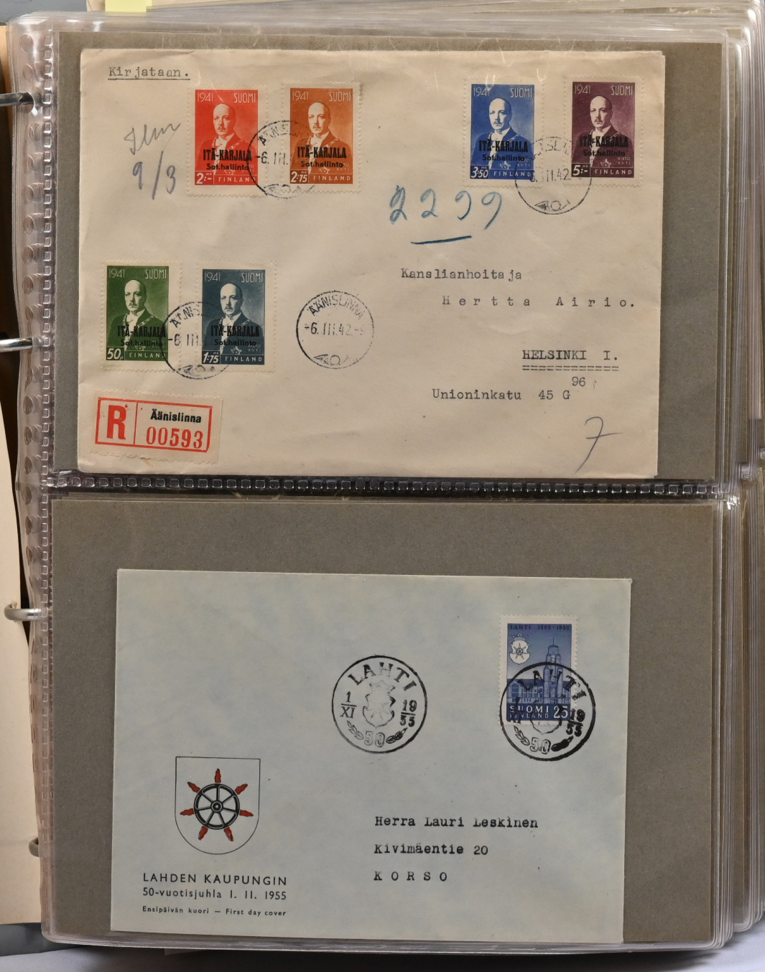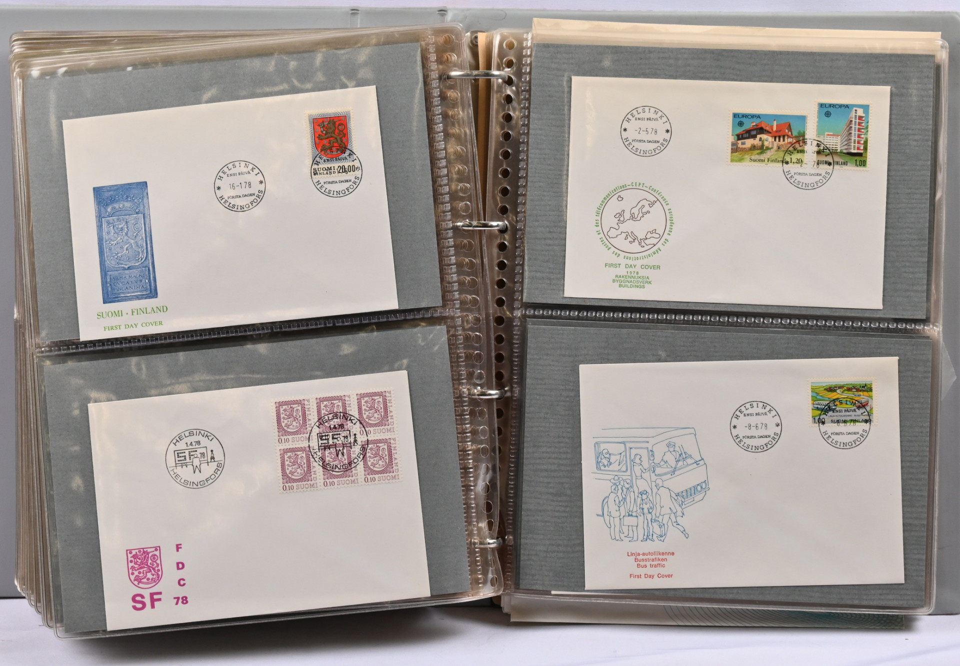 1941 alkaen erä kansiossa FDC:tä ym aineistoa 1980-luvulle yht. noin 2,8 KG. Mukana myös 1972 vuosilajitelma ja Tove Jansson 100-vuotta lajitelma