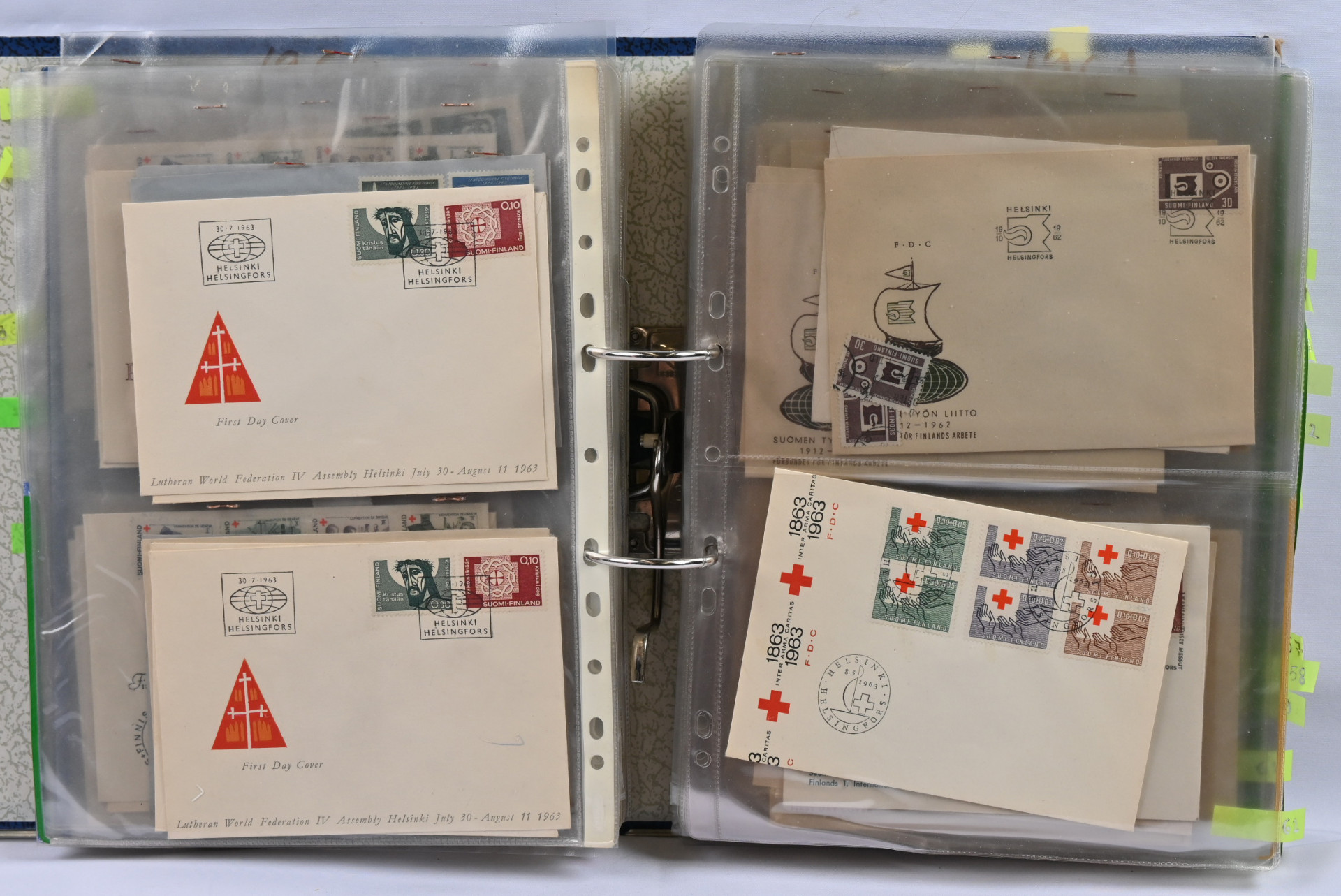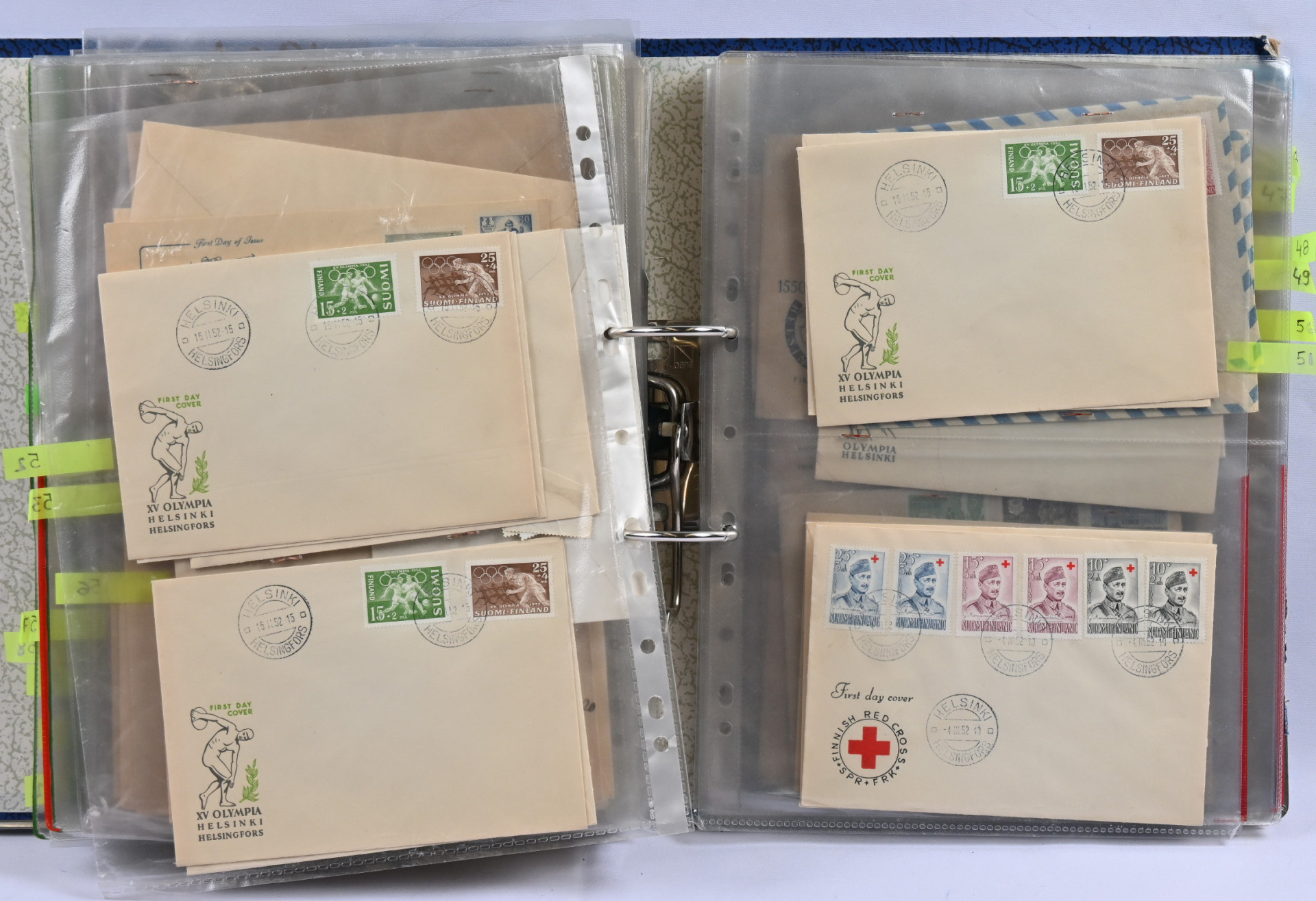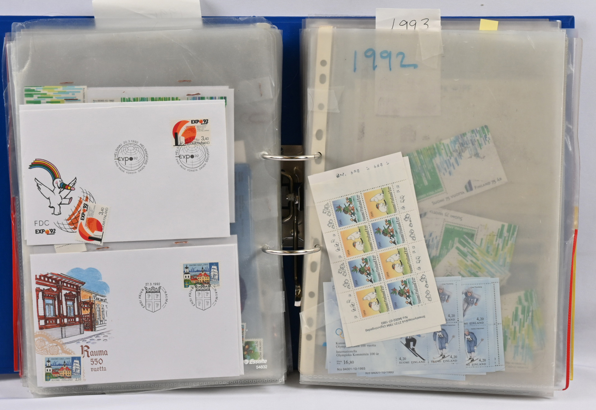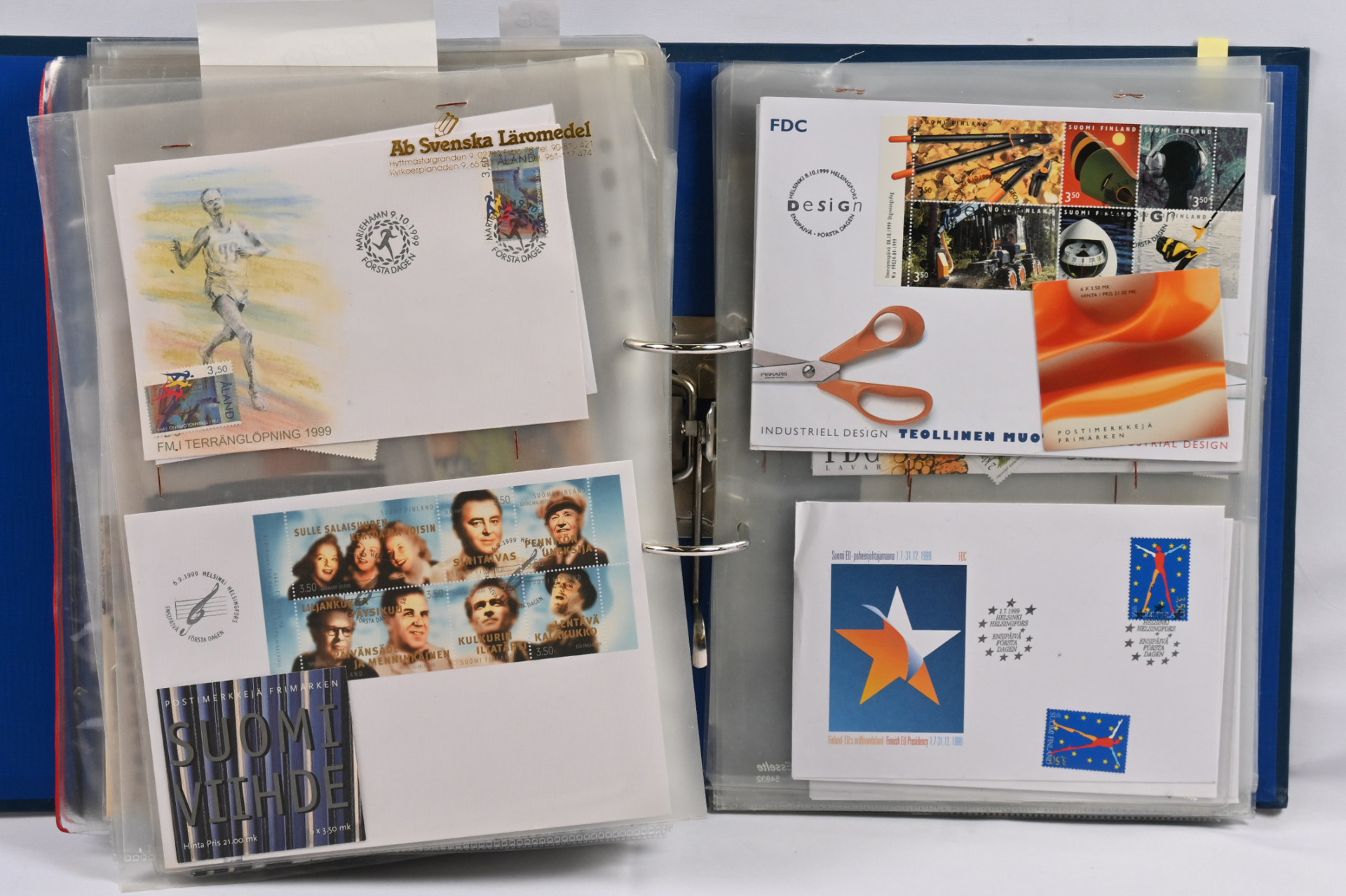 1940-luvulta 2000-luvulle iso FDC ja merkkivarasto kahdeksassa mapissa uudemmassa päässä mm. vihkoja ja pienoisarkkeja ** myös 1. luokan merkkejä! Vanhassa päässä pikku hyviä FDC:tä kuten m/30 leijonat 3 markkaa ja 12/10 markkaa, 1946 PR sarjaa useampi jne.