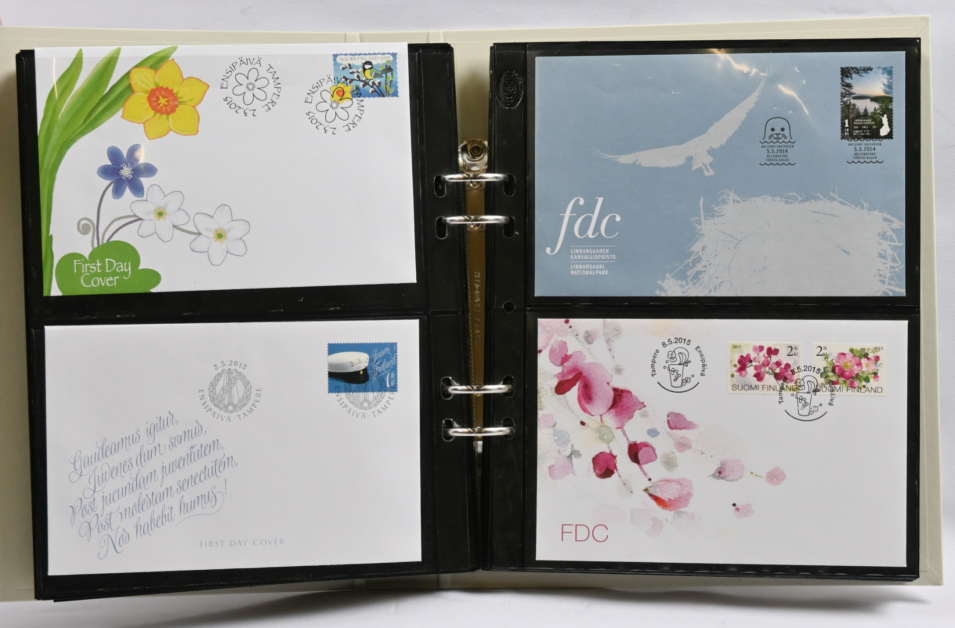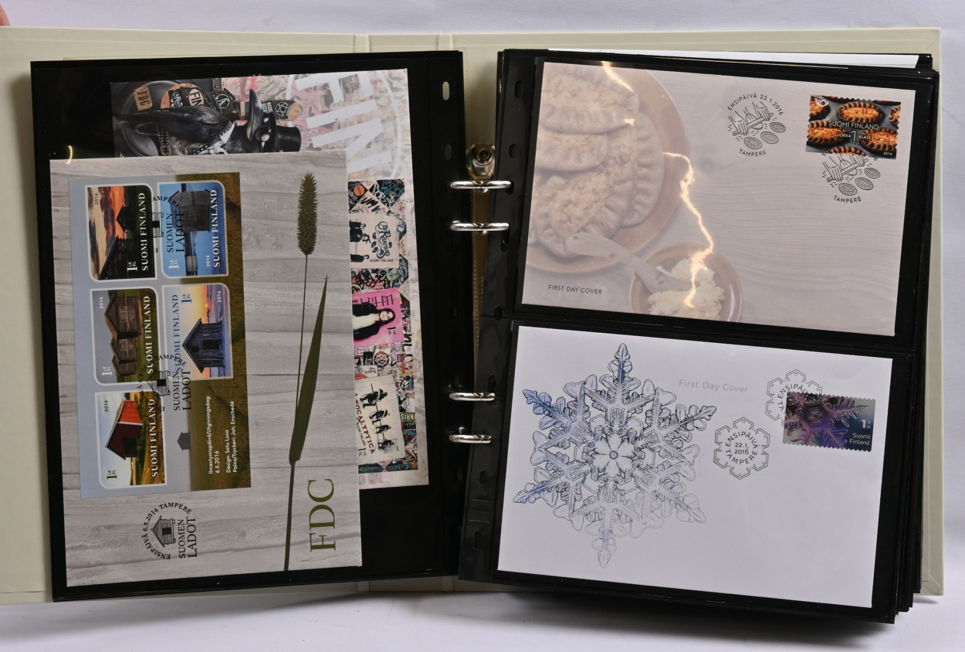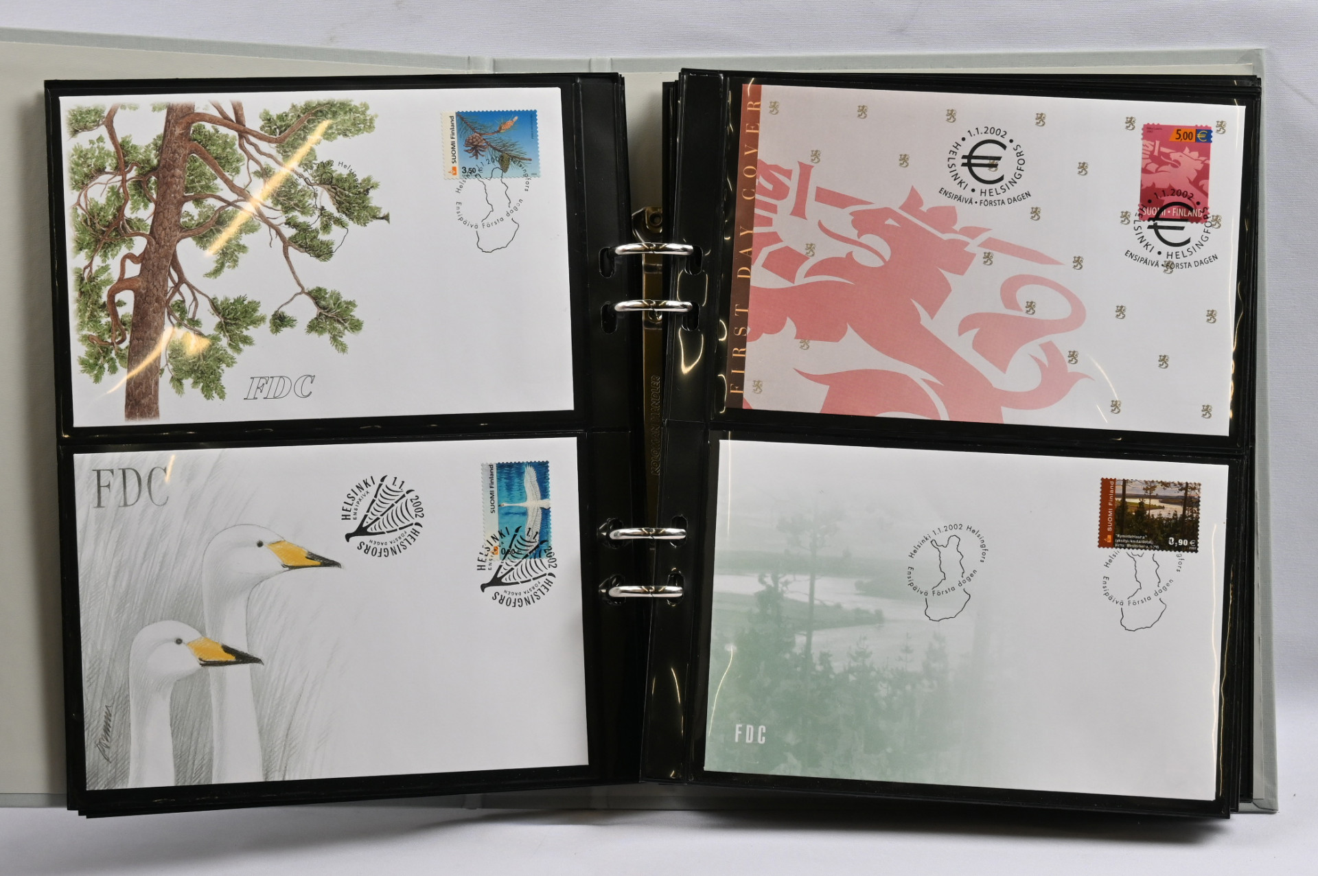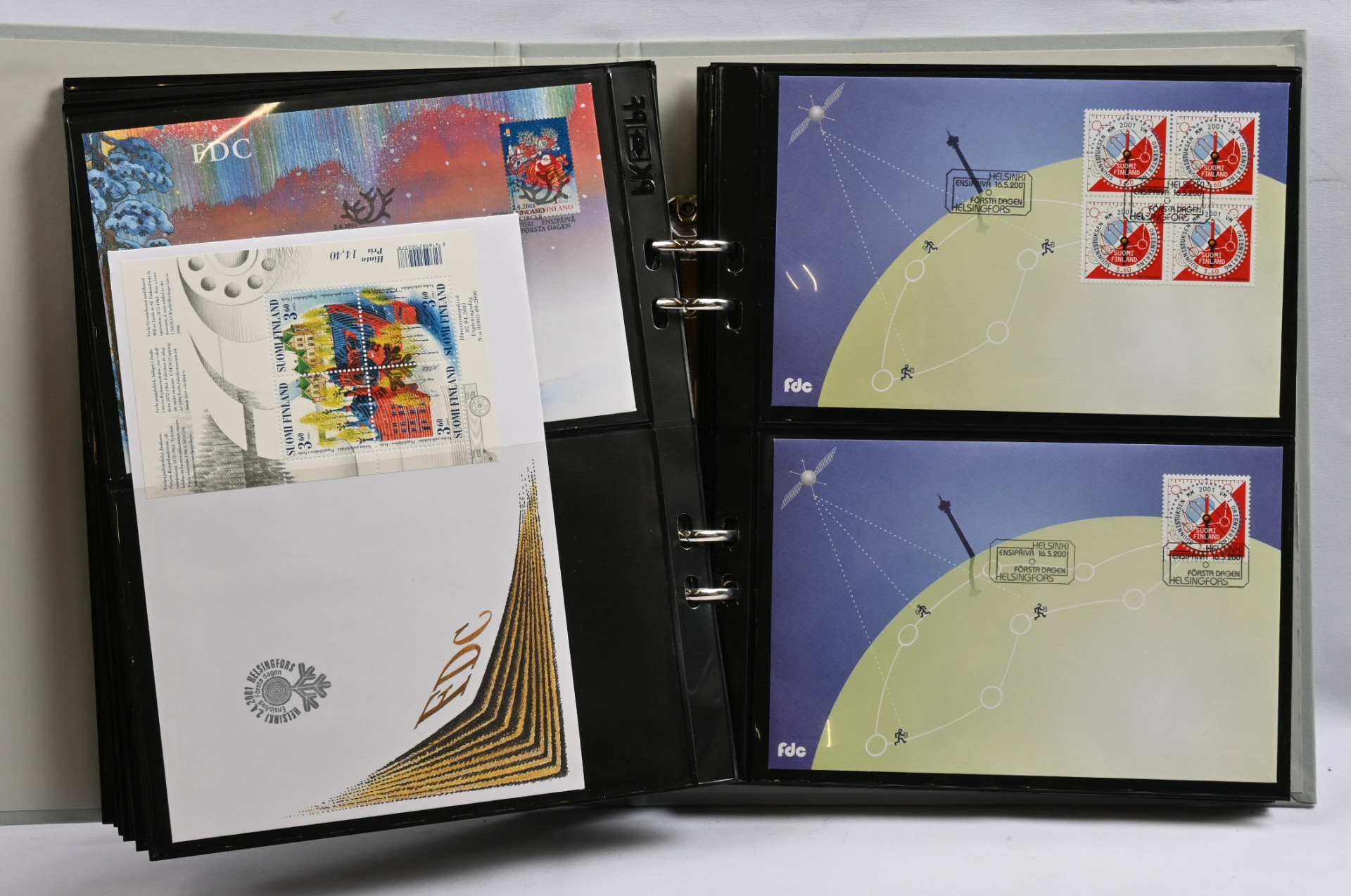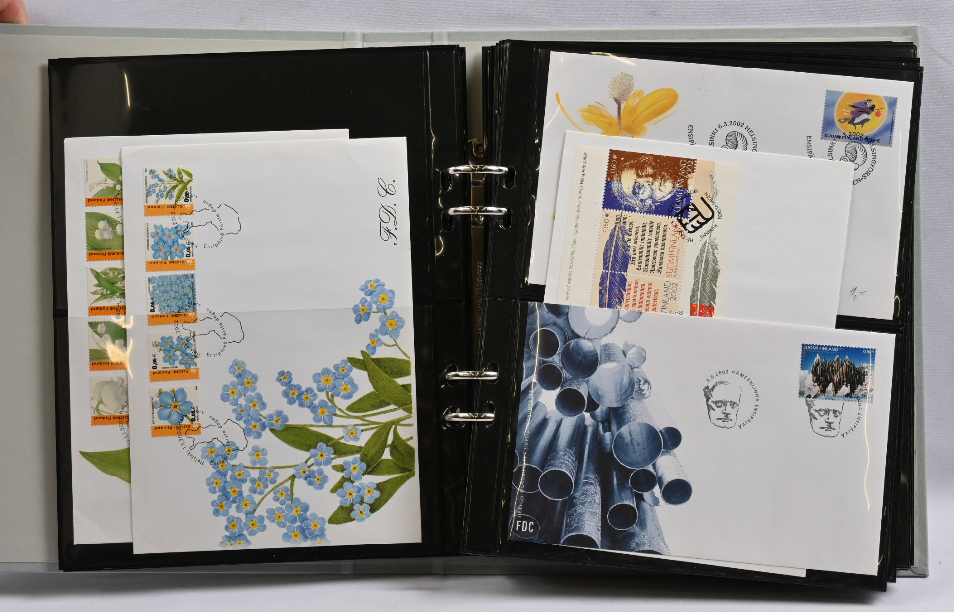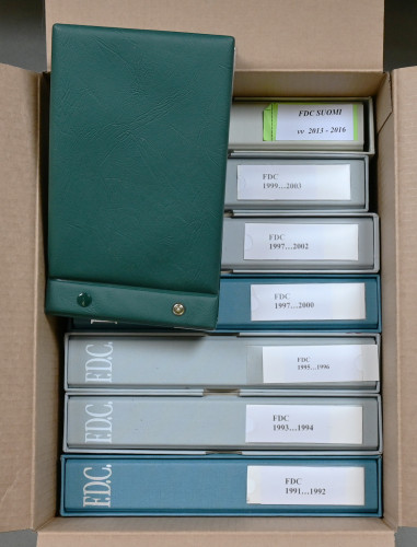 FDC ym kokoelmaerä 1940-luvulta 2000-luvulle mm. nelilöfdc:tä kahdeksassa kansiossa