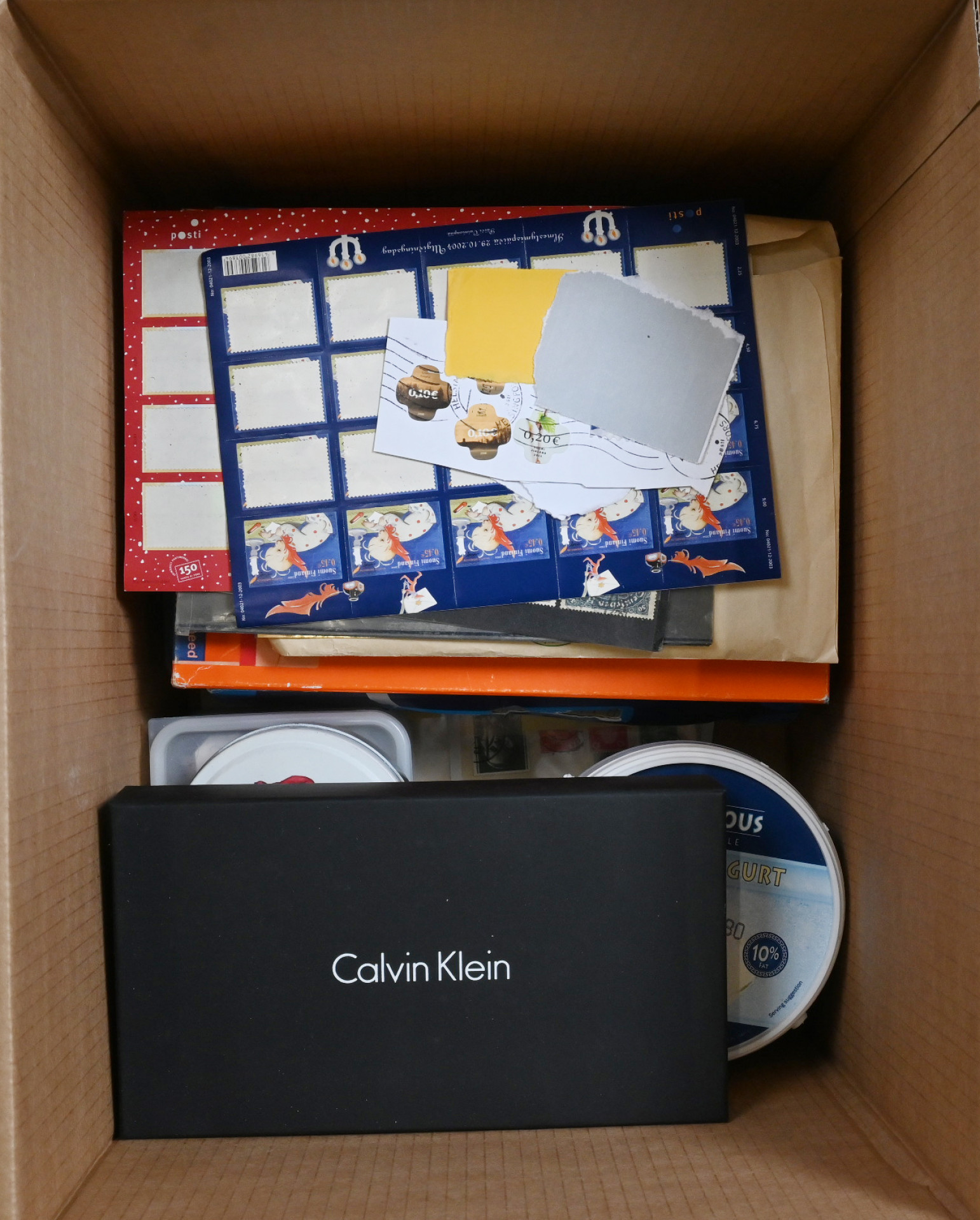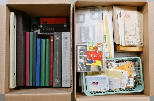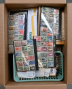Noin 5½ KG laatikossa Suomen ja ulkomaiden sekalaista massaa pienissä rasioissa, kirjekuorissa jne. Myös muutama vuosilajitelma, postilähetyksiä FDC-kuoria ym. Lisäksi toinen laatikko jossa lähinnä tyhjiä säiliökirjoja, kaksi vanhaa LAPE-erikoisluetteloa sekä toimiva Signoscope T2 vesileimanetsin.