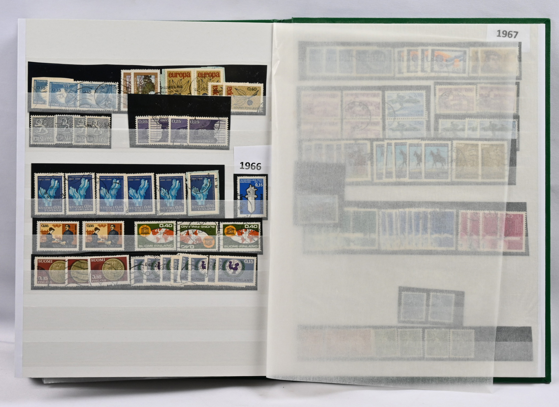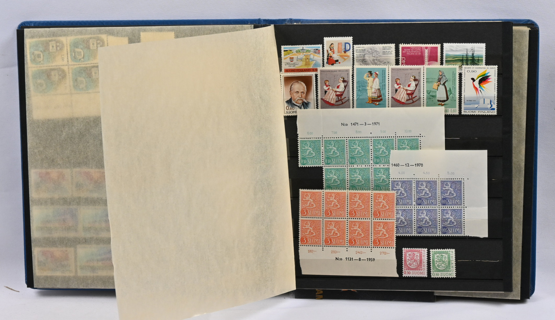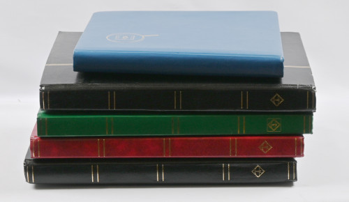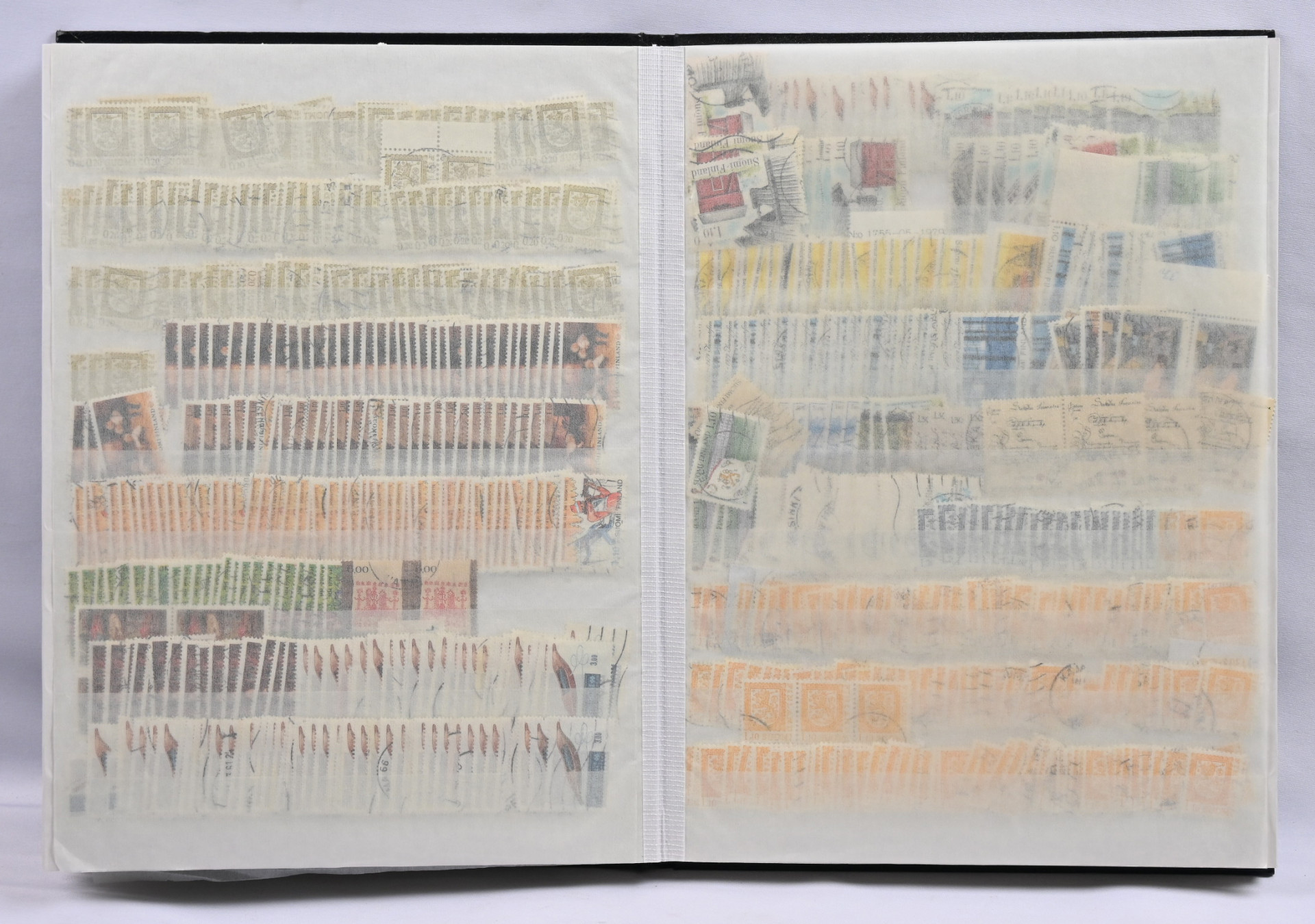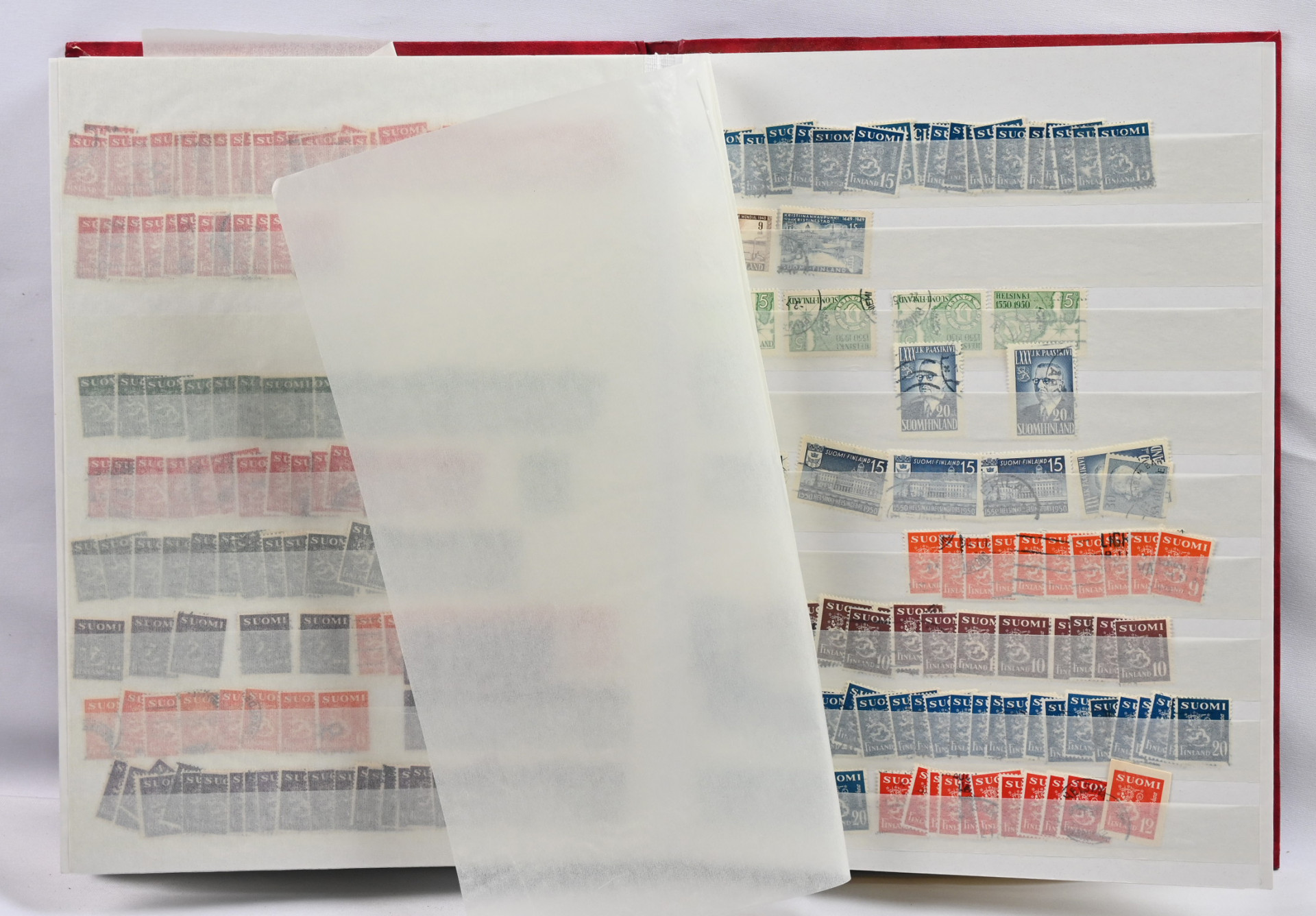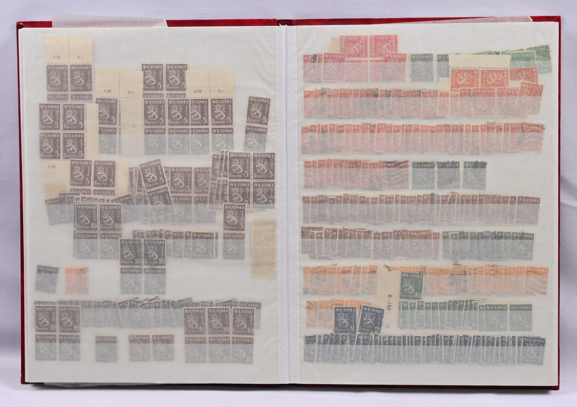 Varastoerä Suomen perusmateriaalia viidessä, osin vajaassa säiliökirjassa. Lähinnä leimattua, vähän **