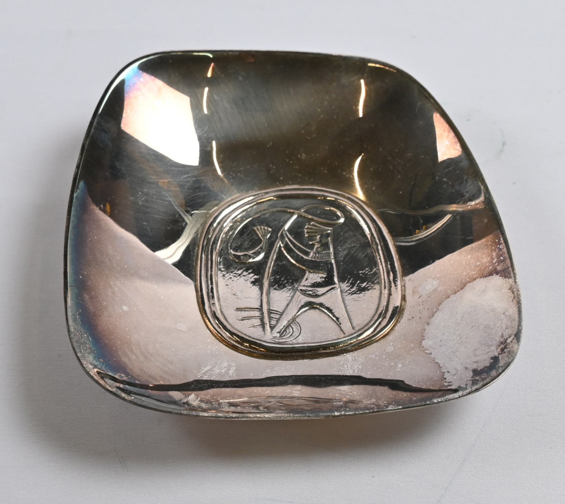 Hopeatehdas Oy, malja, hopeaa (813), tavanomaista käyttökulumaa. Leveys noin 12 cm ja korkeus noin 12,5 cm.