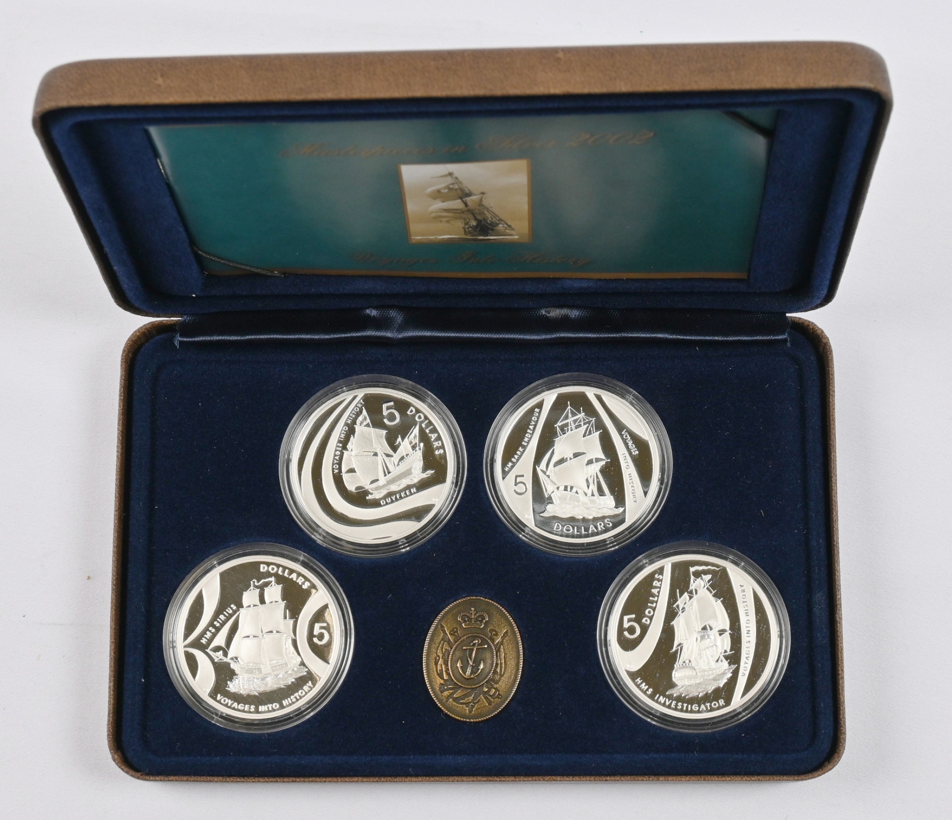 Australia 2002, ”Masterpieces in Silver”, neljä hienoa $5 hopeakolikkoa (á 36g - 0,999) hienossa rasiassa. Aitoustodistus.