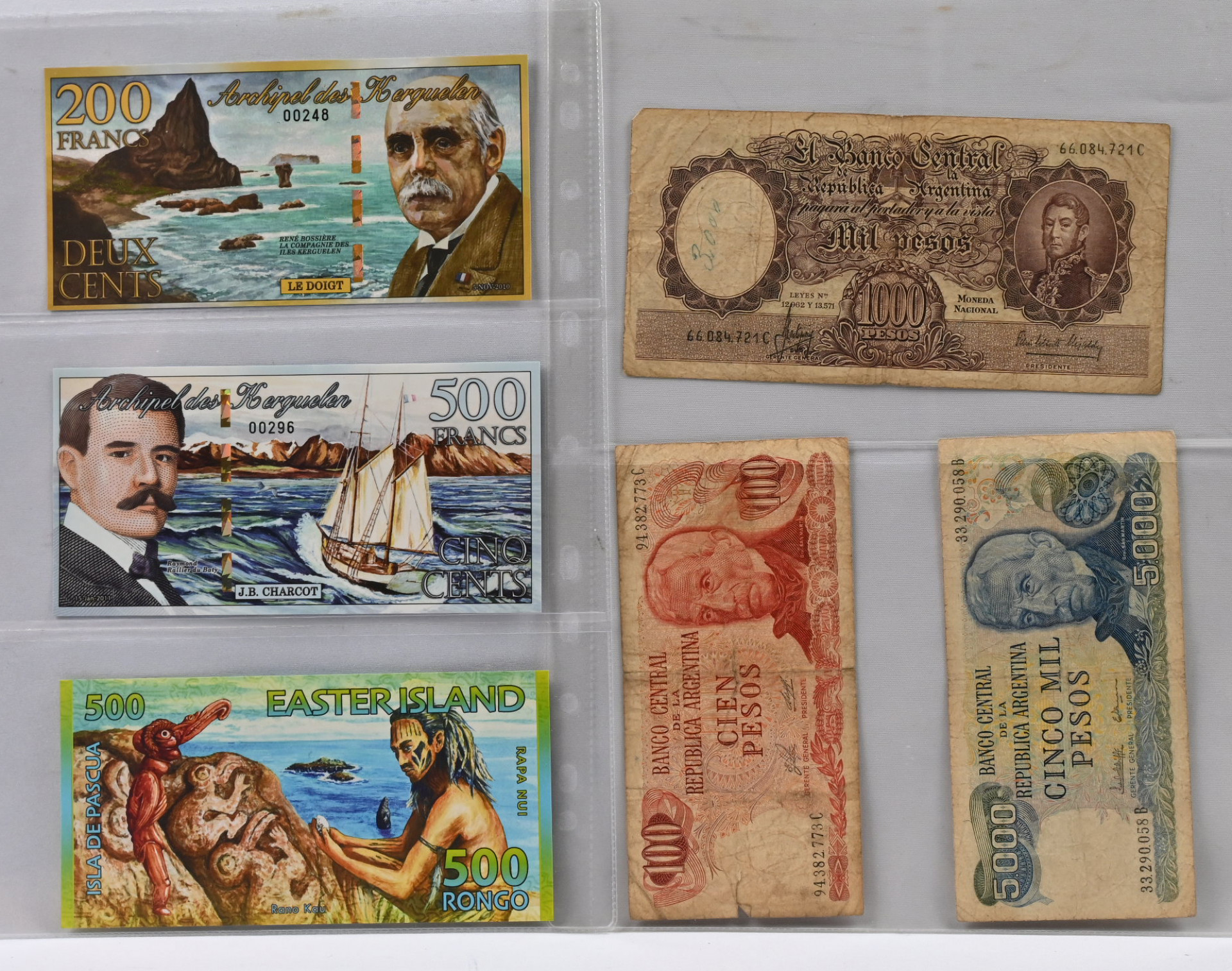 Etelä- ja väli-Amerikka ja Etelämanner, kokoelma yli 60 seteliä säilytyslehdillä. Monia eri maita, lähinnä uudempaa UNC-laatuista sekä joitakin vanhempia käytössä olleitakin. Joitakin keskihintaisia mm. Bermuda 5$ 2009, Itä-Karibia 5$ 1993, Costa Rica 2000 colones 1997, Brasilia 1994 1 Reais - 100 Reais seitsemän erilaista