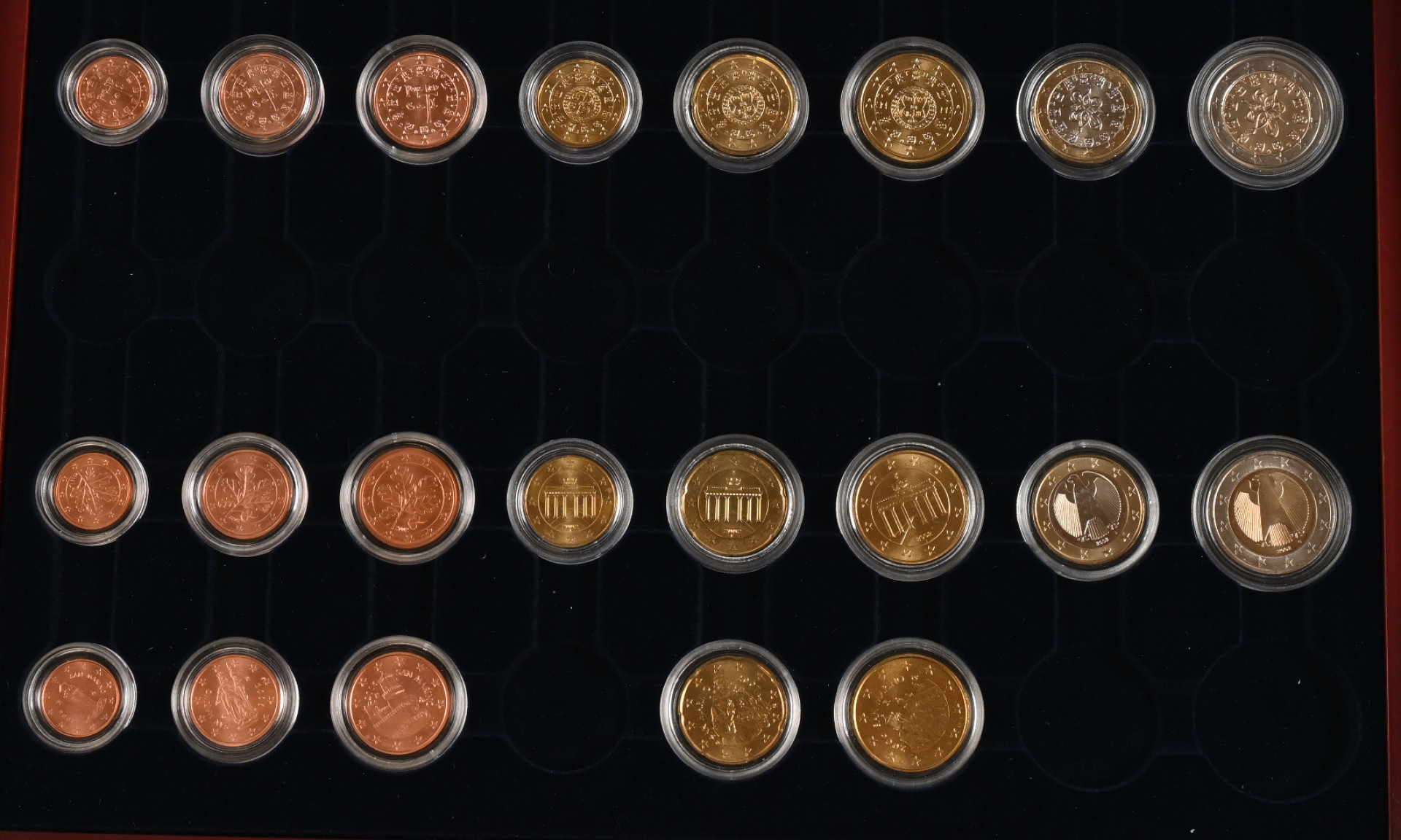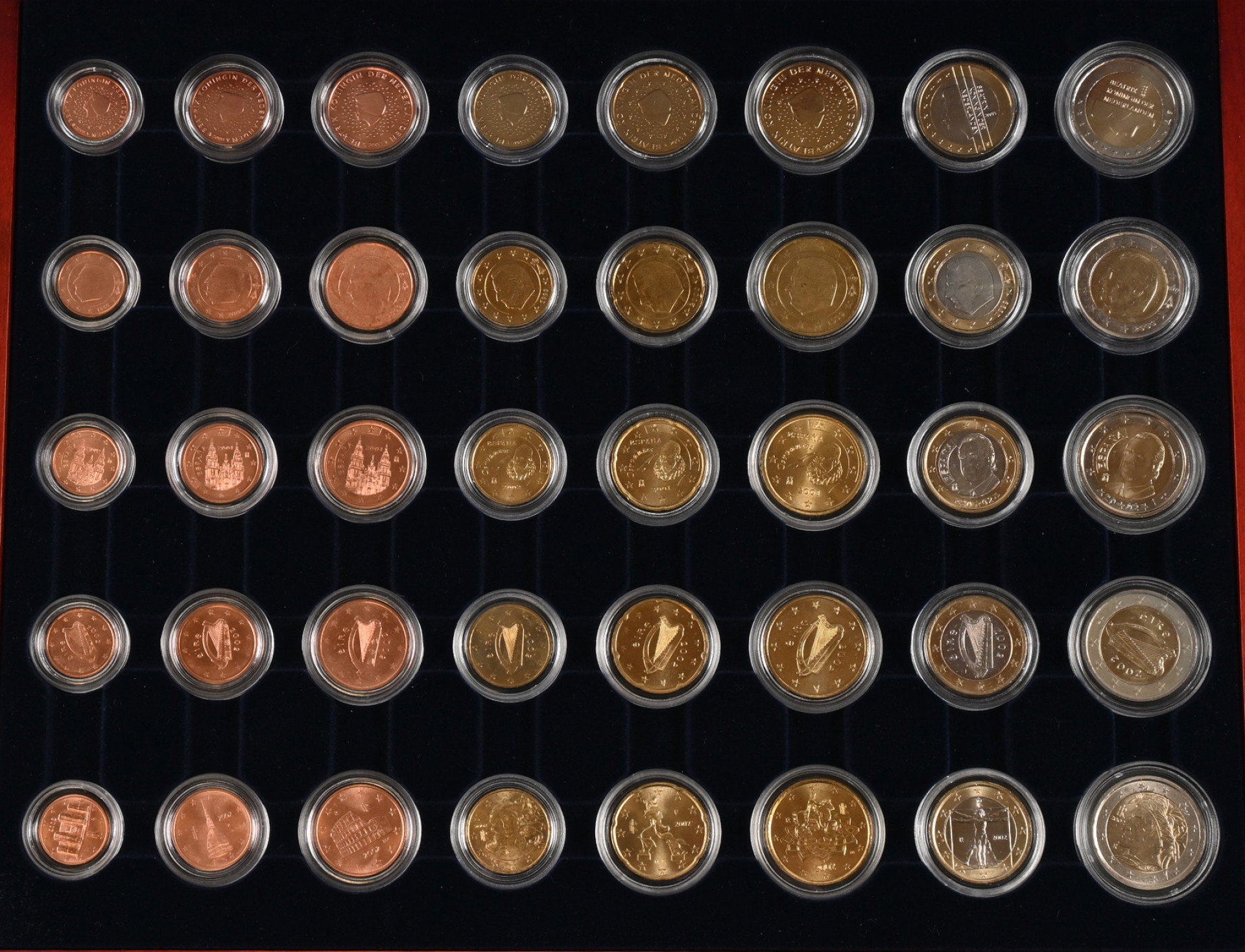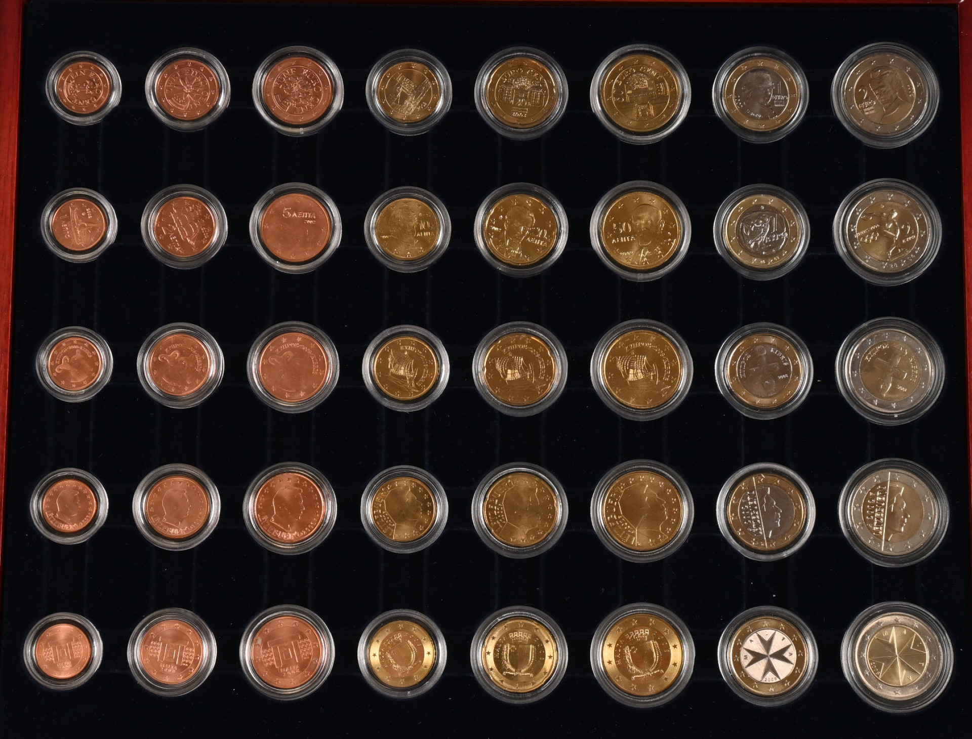 Eurokolikoiden sarjoja 1c - 2€ 17 kappaletta kahdessa hienossa puisessa keräilylaatikossa