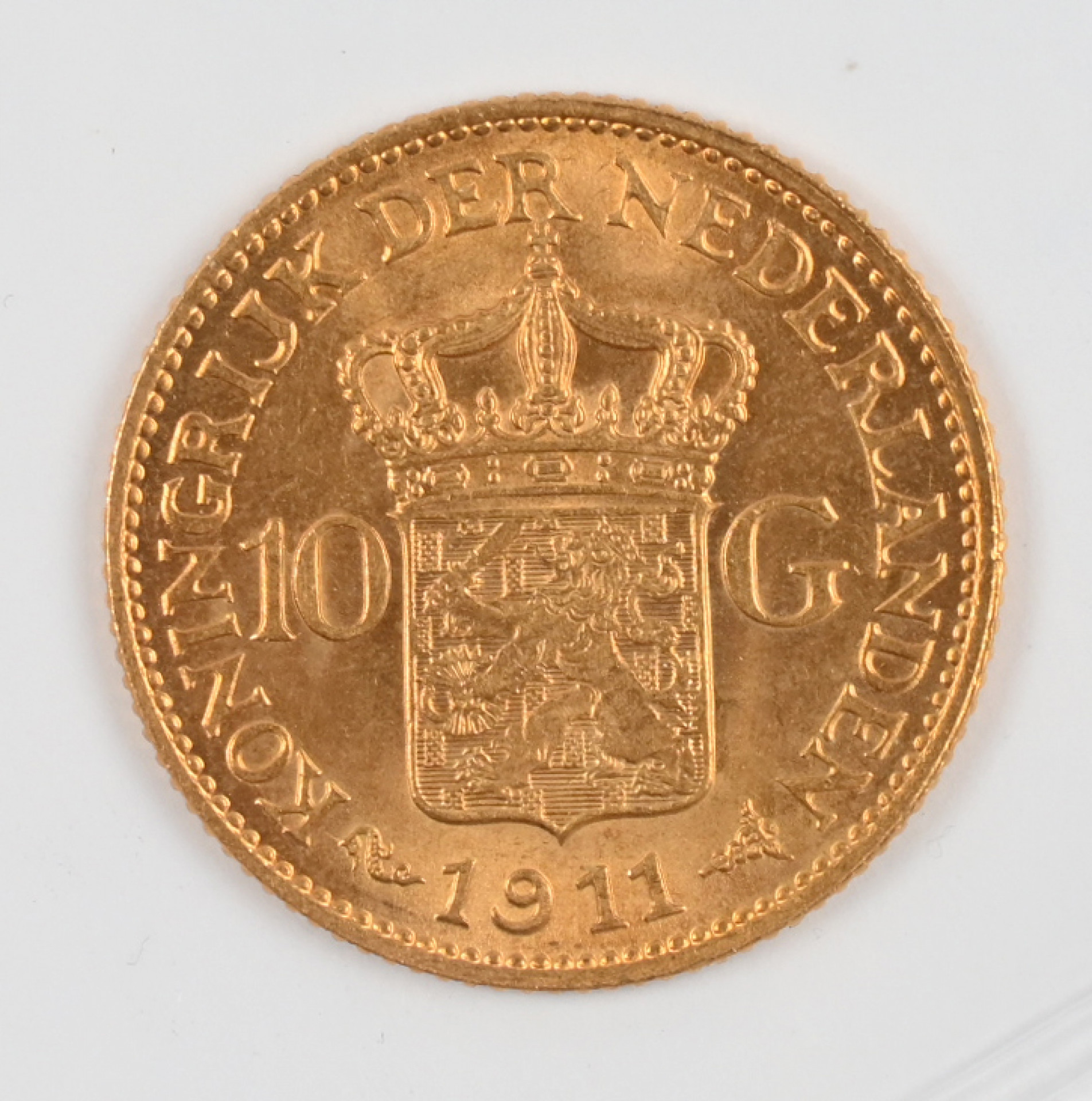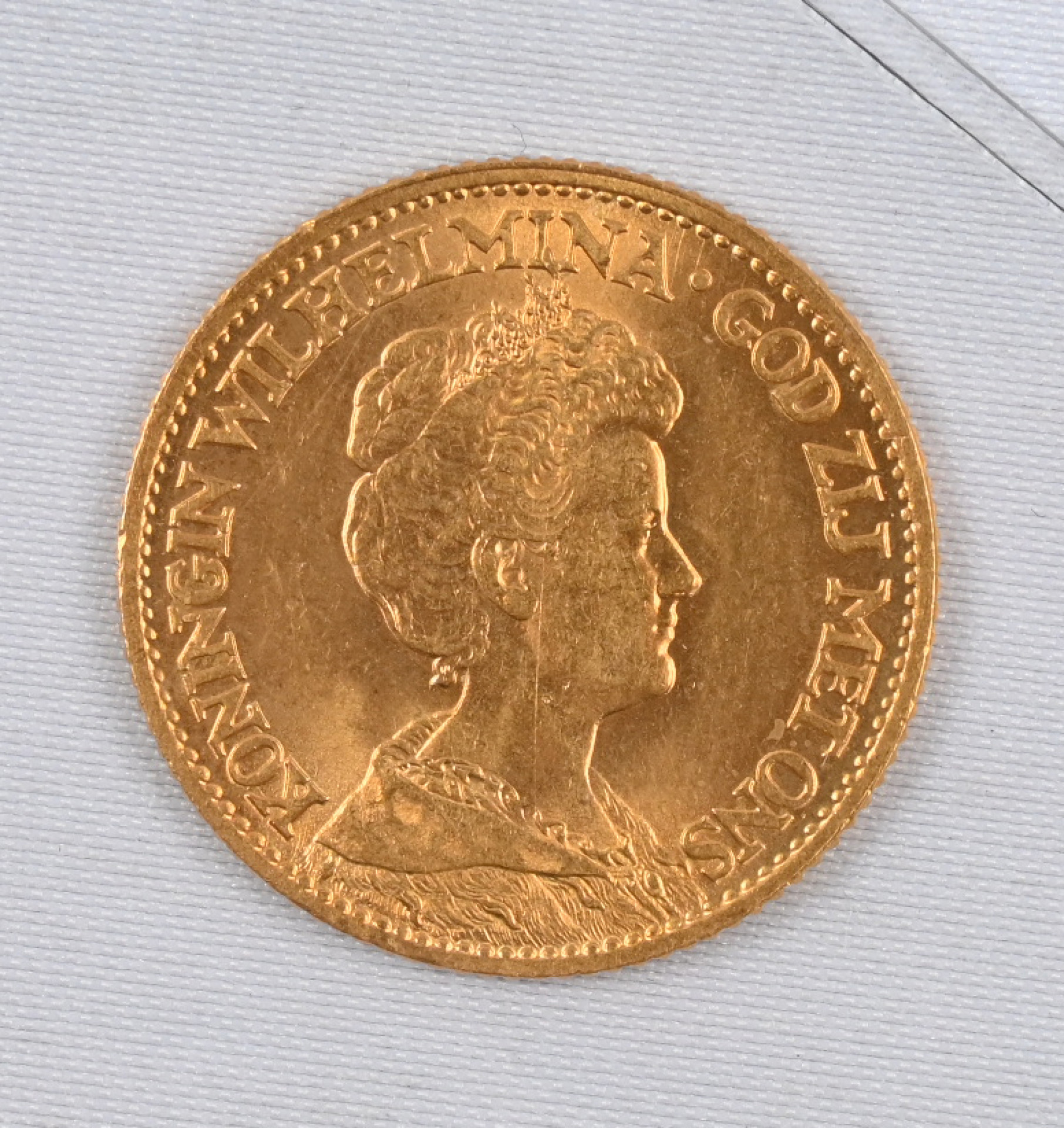 Hollanti 1911 10 Guldenia, Wilhelmina, kultaa