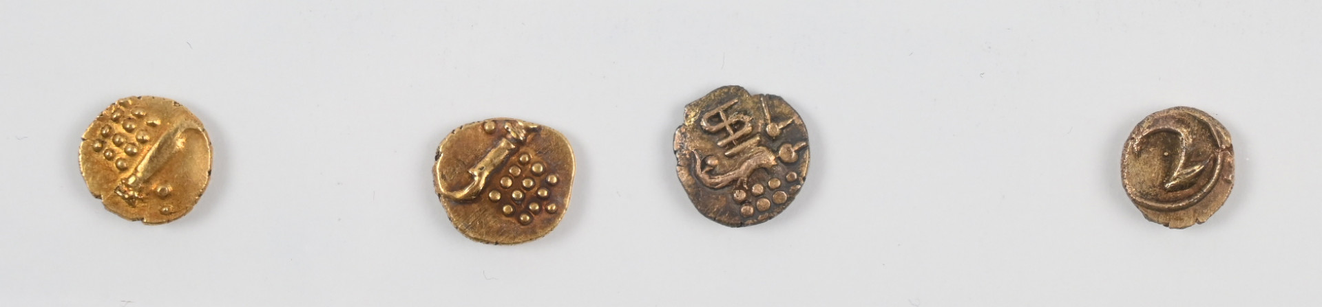 Intian Hindu Dynastia kaksi vanhaa pientä kultalyöntiä 1 Fanam ja lisäksi kaksi muuta vanhaa lyöntiä