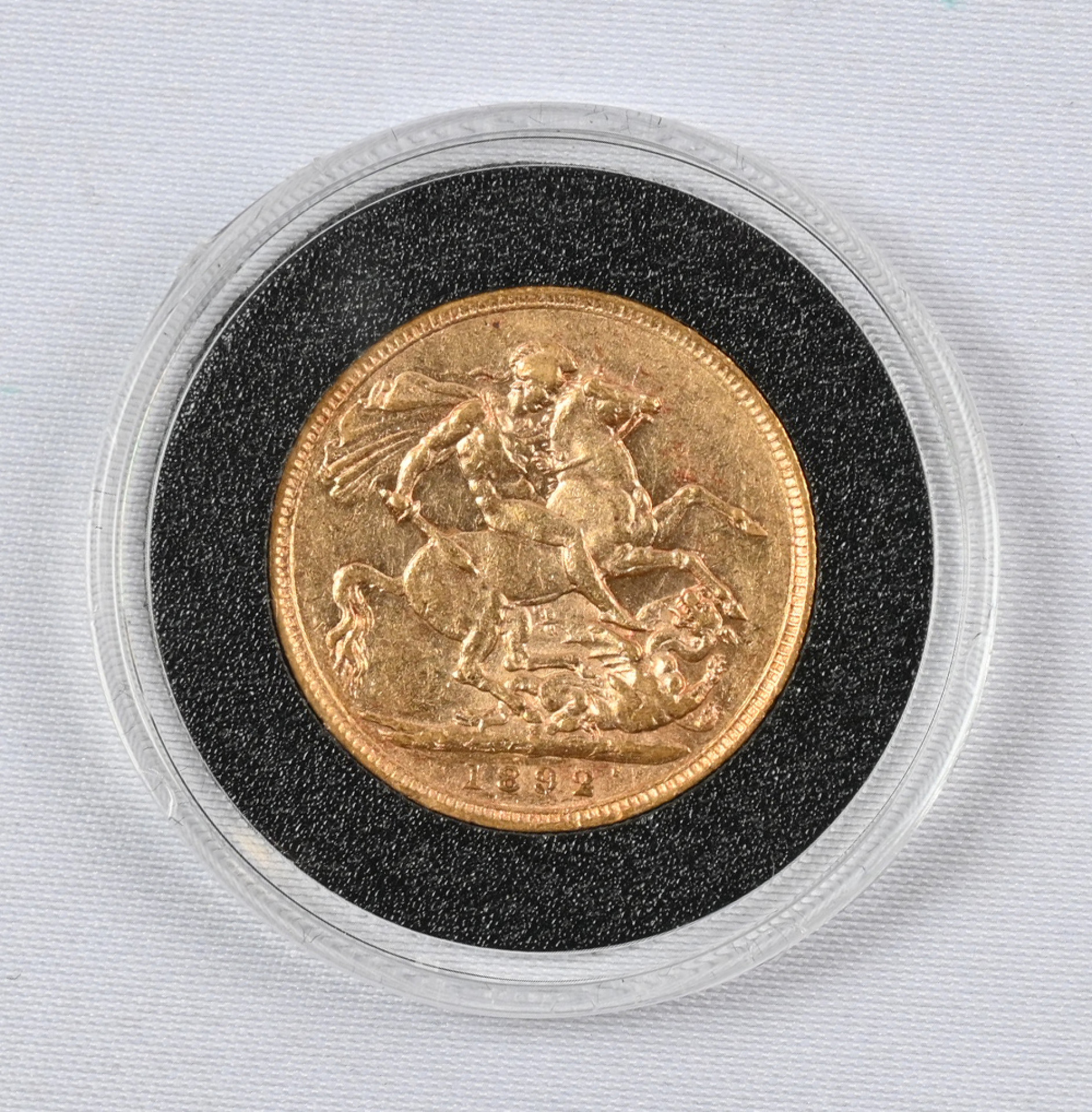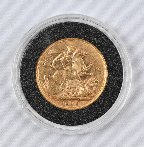 Iso Britannia 1892 Sovereign kultaa (7,988 g - 0,917). Aitoustodistus