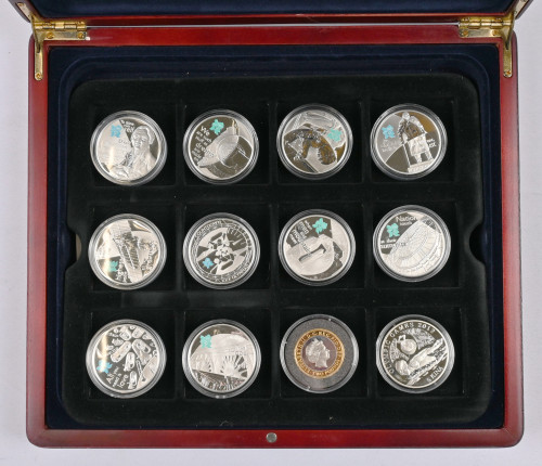 Iso Britannia 2010 Lontoon olympialaisten hopeisia juhlarahoja 17 kappaletta aitoustodistuksin puurasiassa. Näistä 13 kappaletta 5£ (925) rahoja