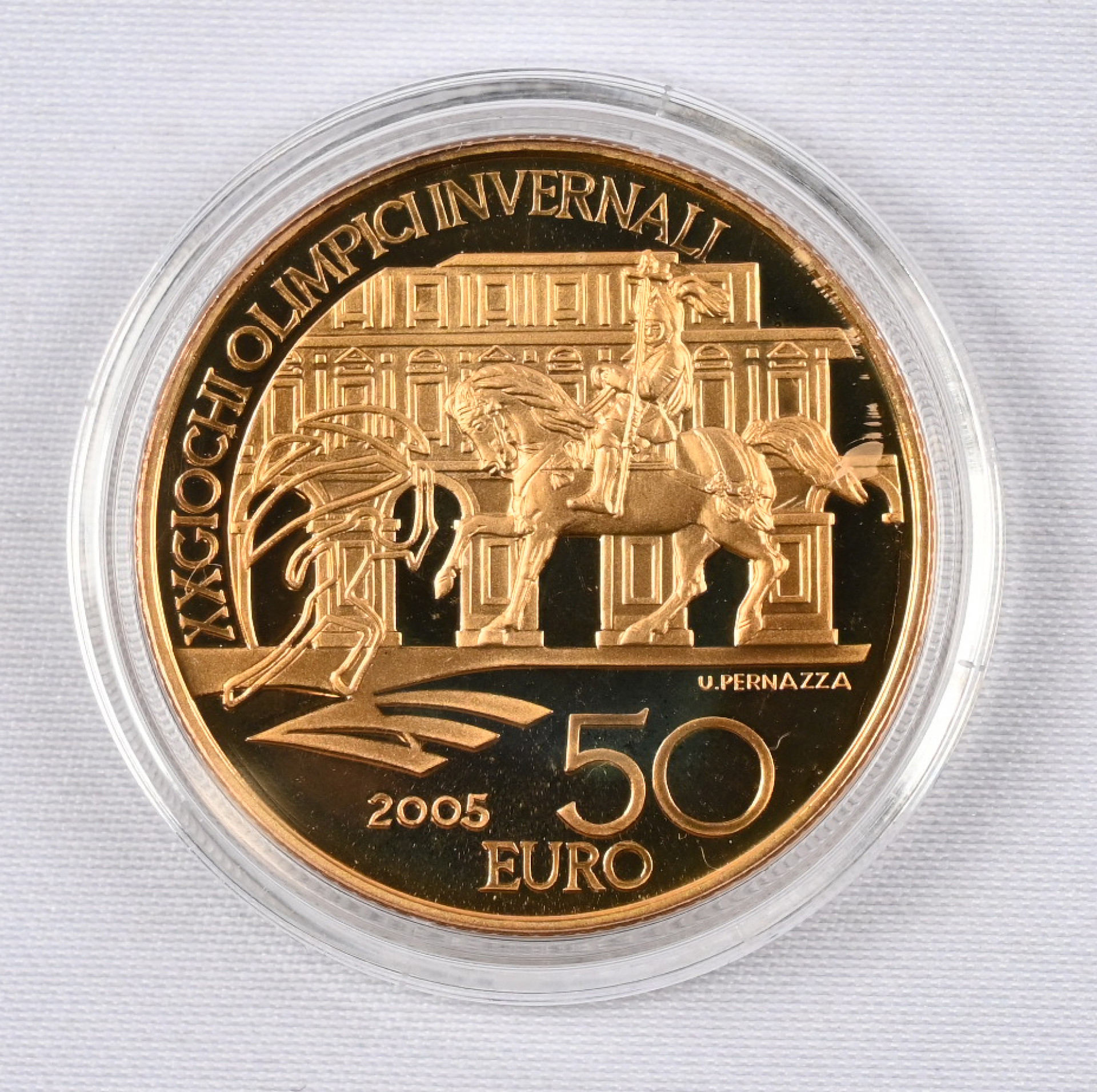 Italia 2006 Torinon Olympialaiset, ratsastajapatsas 50 euroa kultaa (16,13 g - 0,900). Aitoustodistus