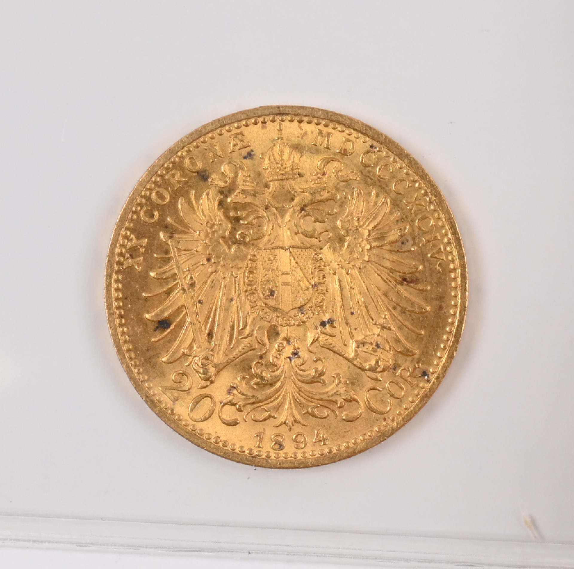 Itävalta 1894 20 Corona, Francis Joseph I, kultaa