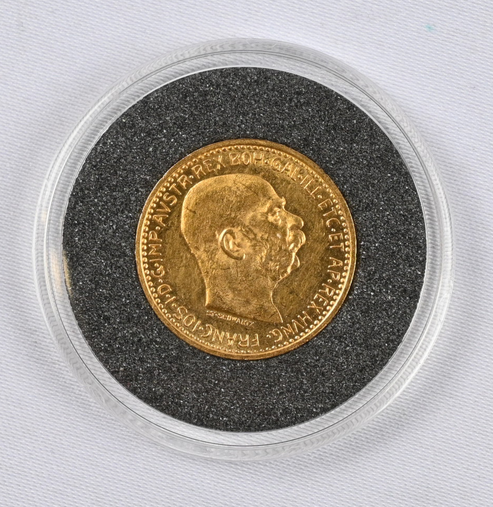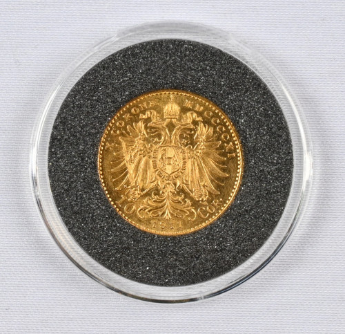 Itävalta 1911 10 koronaa kultaa (3,39 g - 0,900). Aitoustodistus