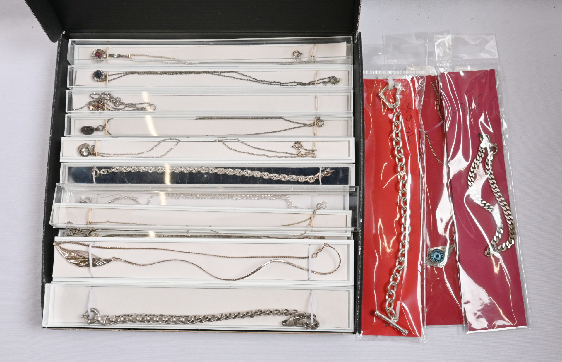 Kaulakoruja hopeaa (925) 15 erilaista + kolme muuta hopeista korua