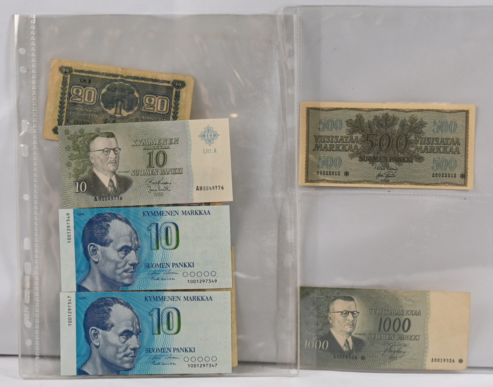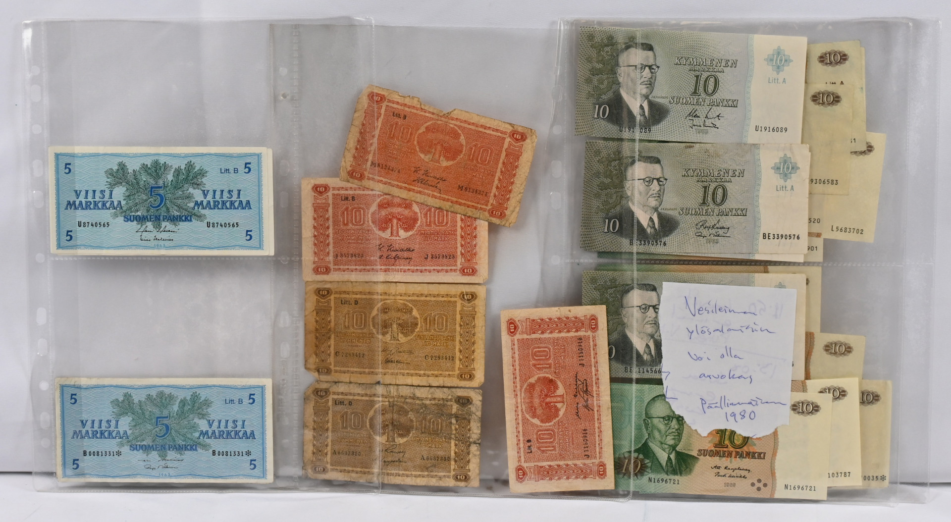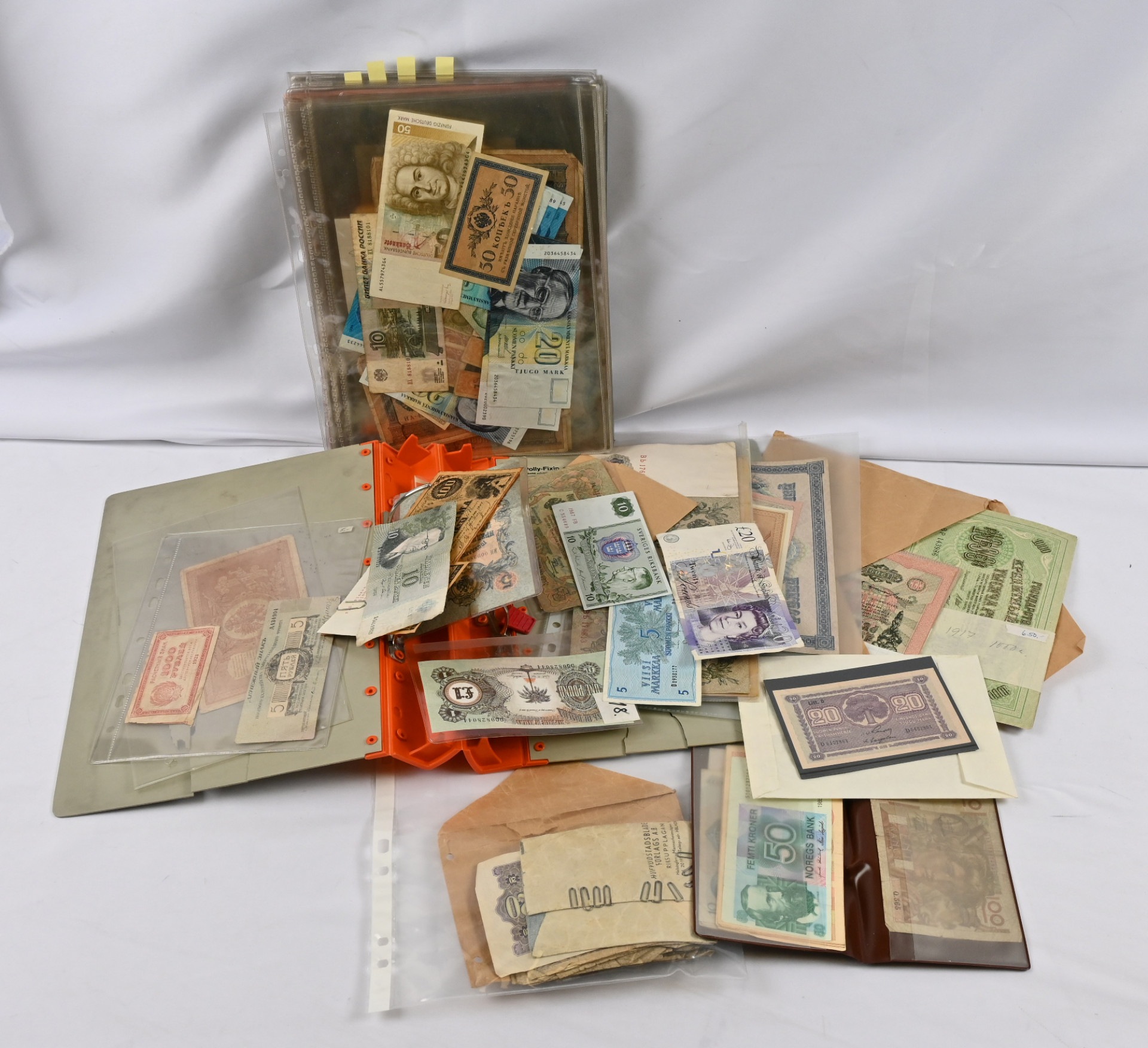 Koko maailma setelien löytöerä vaihtelevalla kunnolla, mm. Suomi 1955 1000 markkaa *, 1955 500 markkaa * ym.