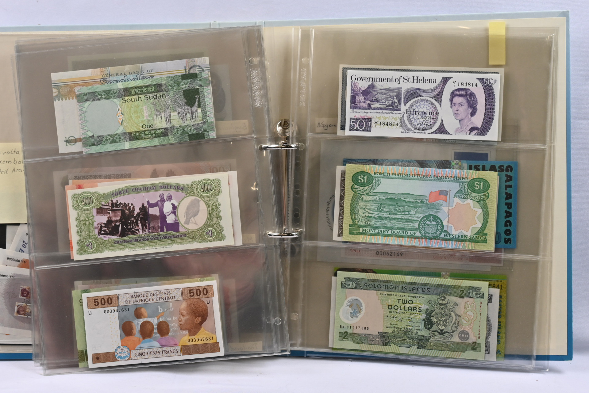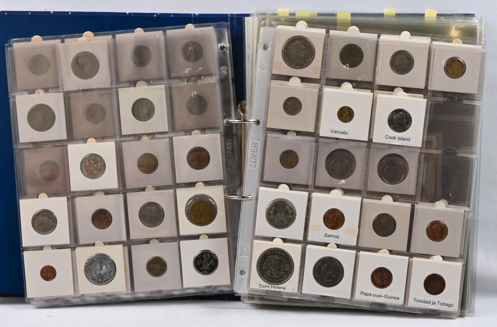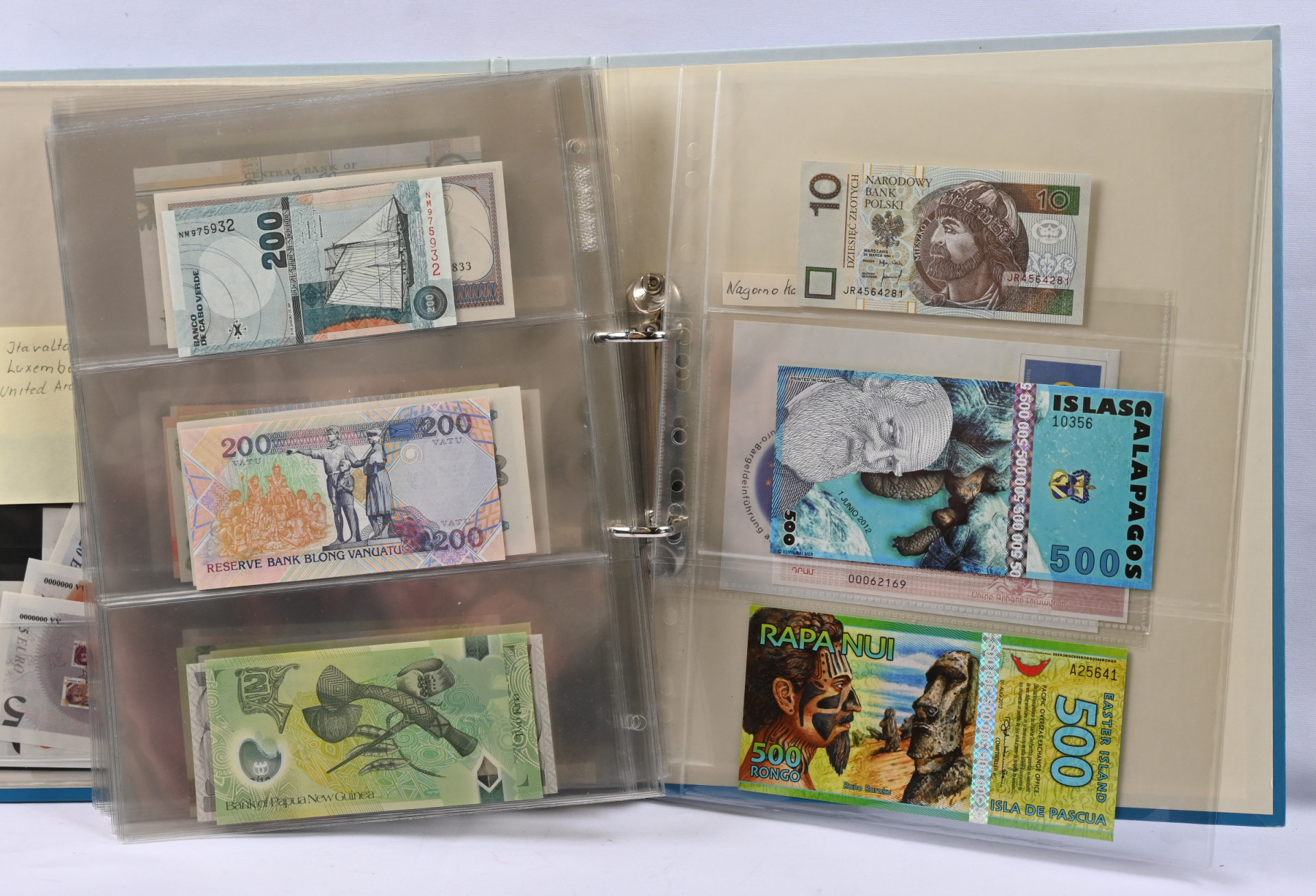 Kokomaailma seteleitä värikäs erä kahdessa kansiossa vanhasta uuteen myös hiukan kolikoita