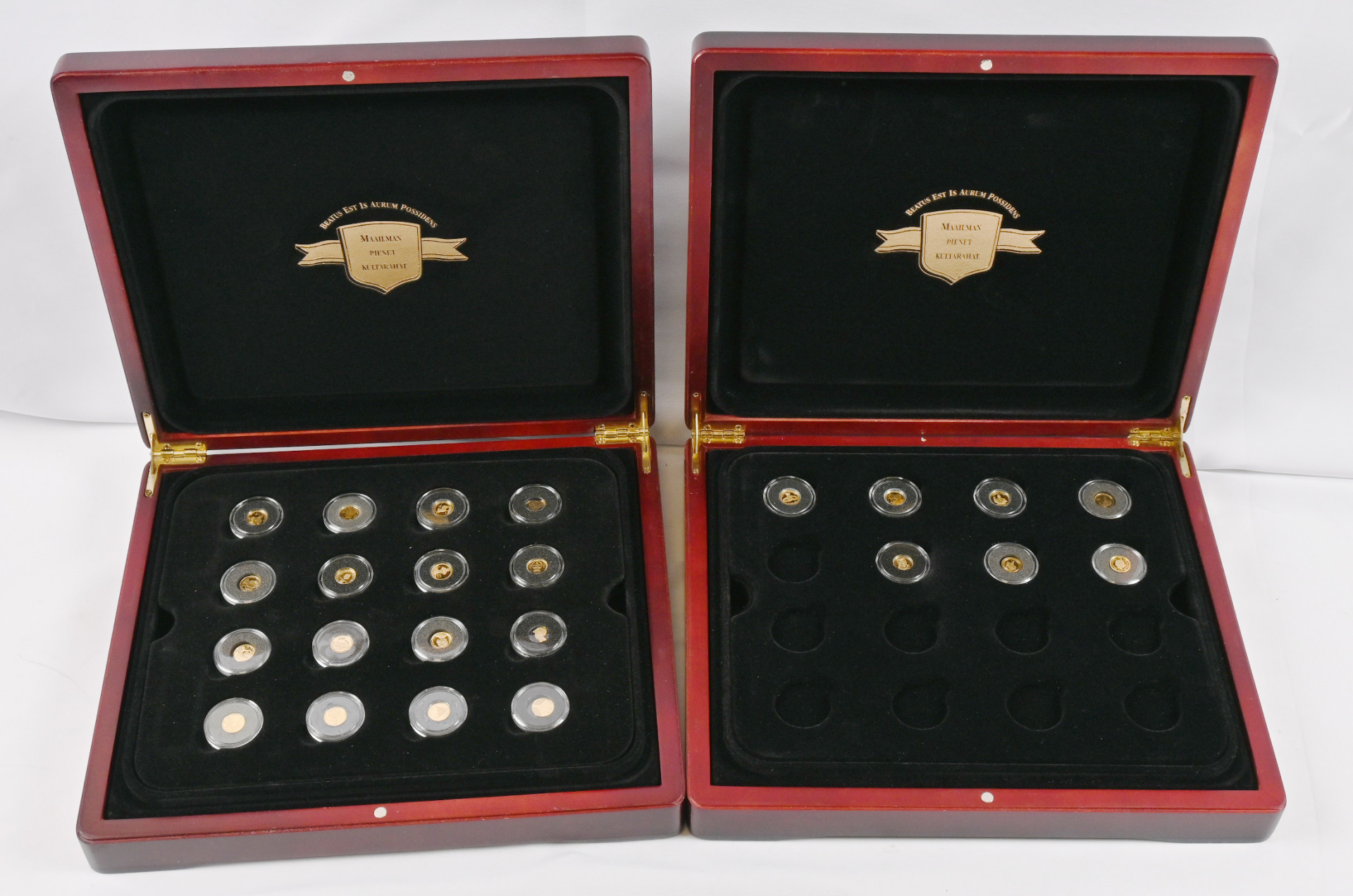 Maailman pienet kultarahat, upea kokoelma yhteensä 39 kultarahaa kahdessa laatikossa. Aitoustodistukset.