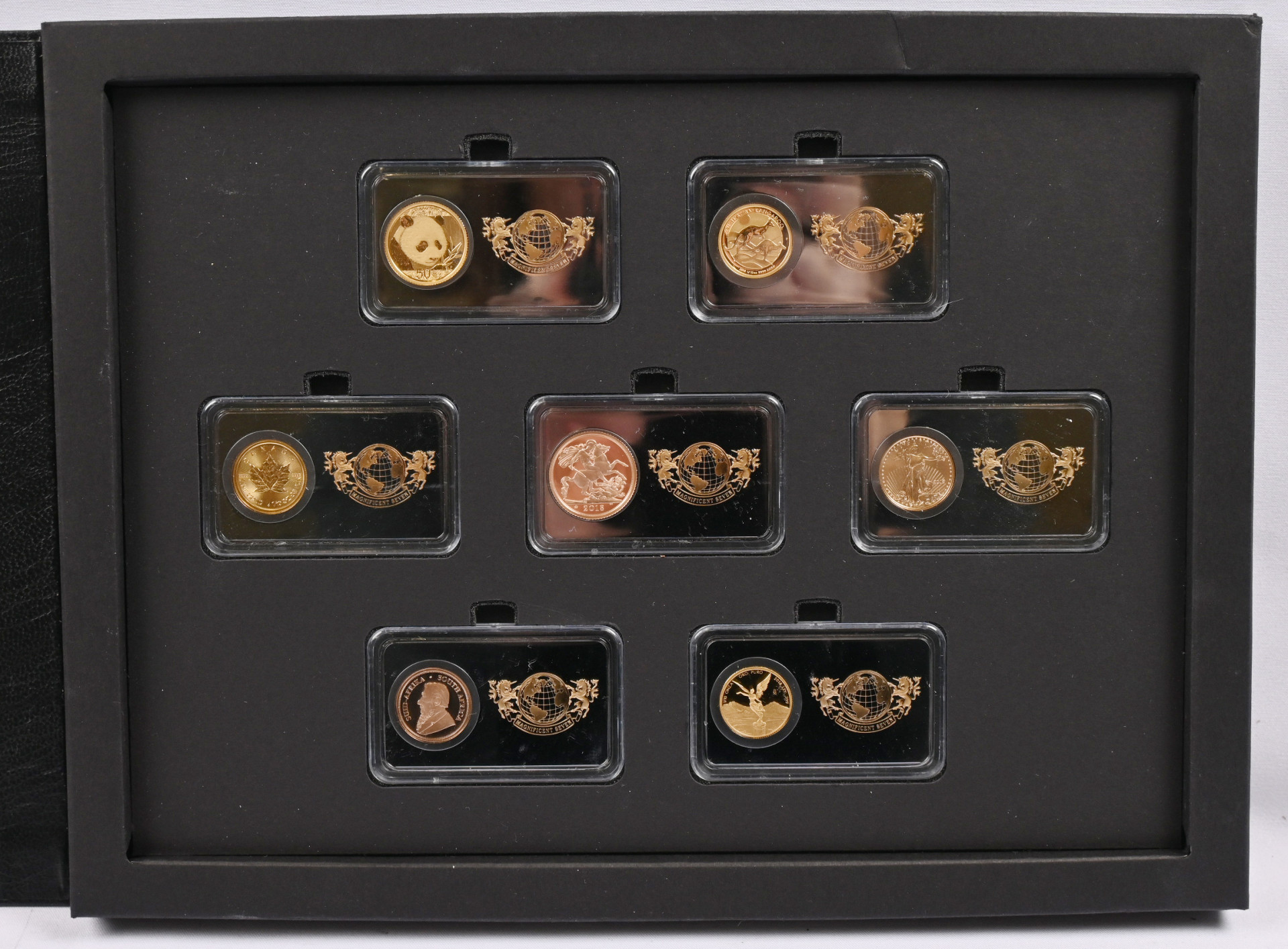 Magnificent Seven 2018 upea kokoelma kultarahoja eri maista seitsemän erilaista mm. Kanada, Kiina ja Australia
