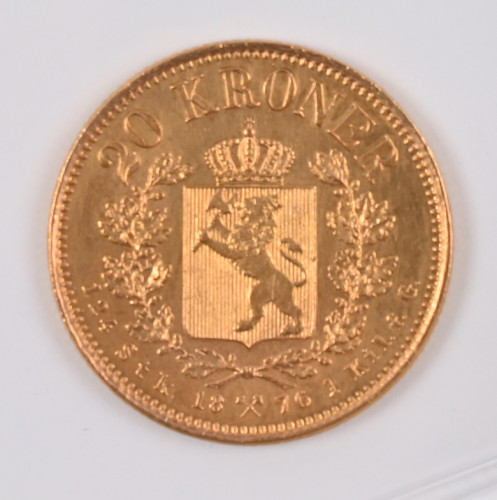 Norja 1876 20 Kruunua, Oscar II, kultaa
