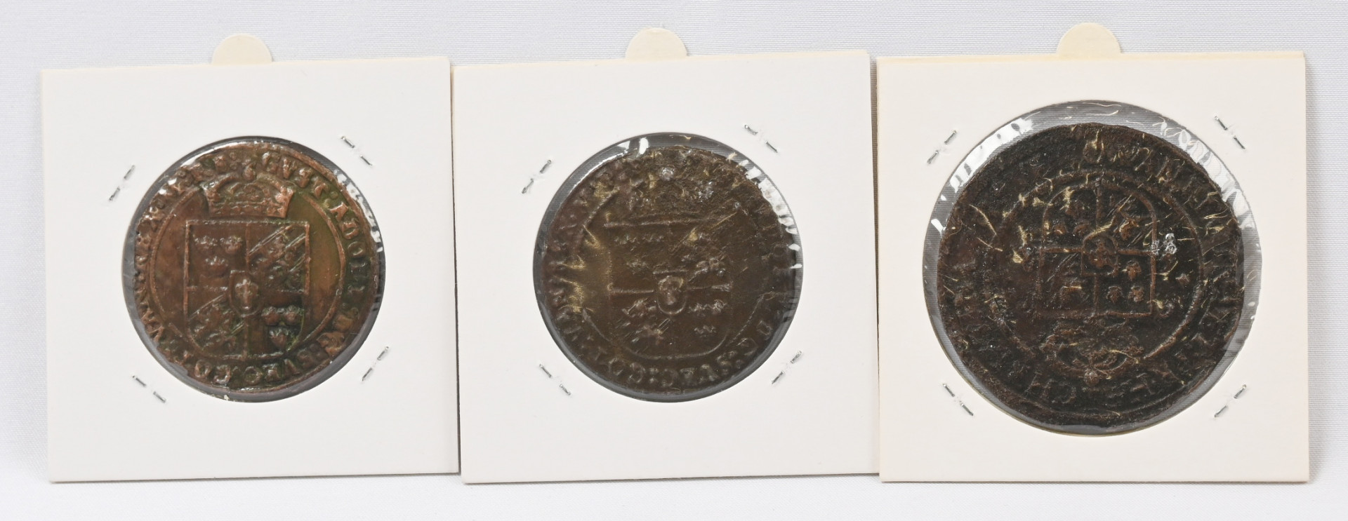 Ruotsi 1629 1 öre tyyppi IIIC, 1630 tyyppi IIIa ja 1645. Hyväkuntoiset