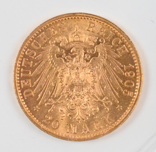 Saksa, Sachsen, 1905 20 markkaa, Frederick August III, kultaa