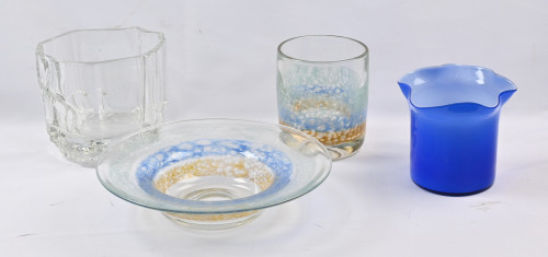 ERÄ: Pertti Santalahti kulho numeroitu ja toinen kulho, joka myös numeroitu ja signeerattu. Lisäksi Armando Jacobino, Kumela, maljakko, singeerattu. Mukana myös Tapio Wirkkalan Rauma Repola maljakko. Tavanomaista käyttökulumaa. VAIN NOUTO