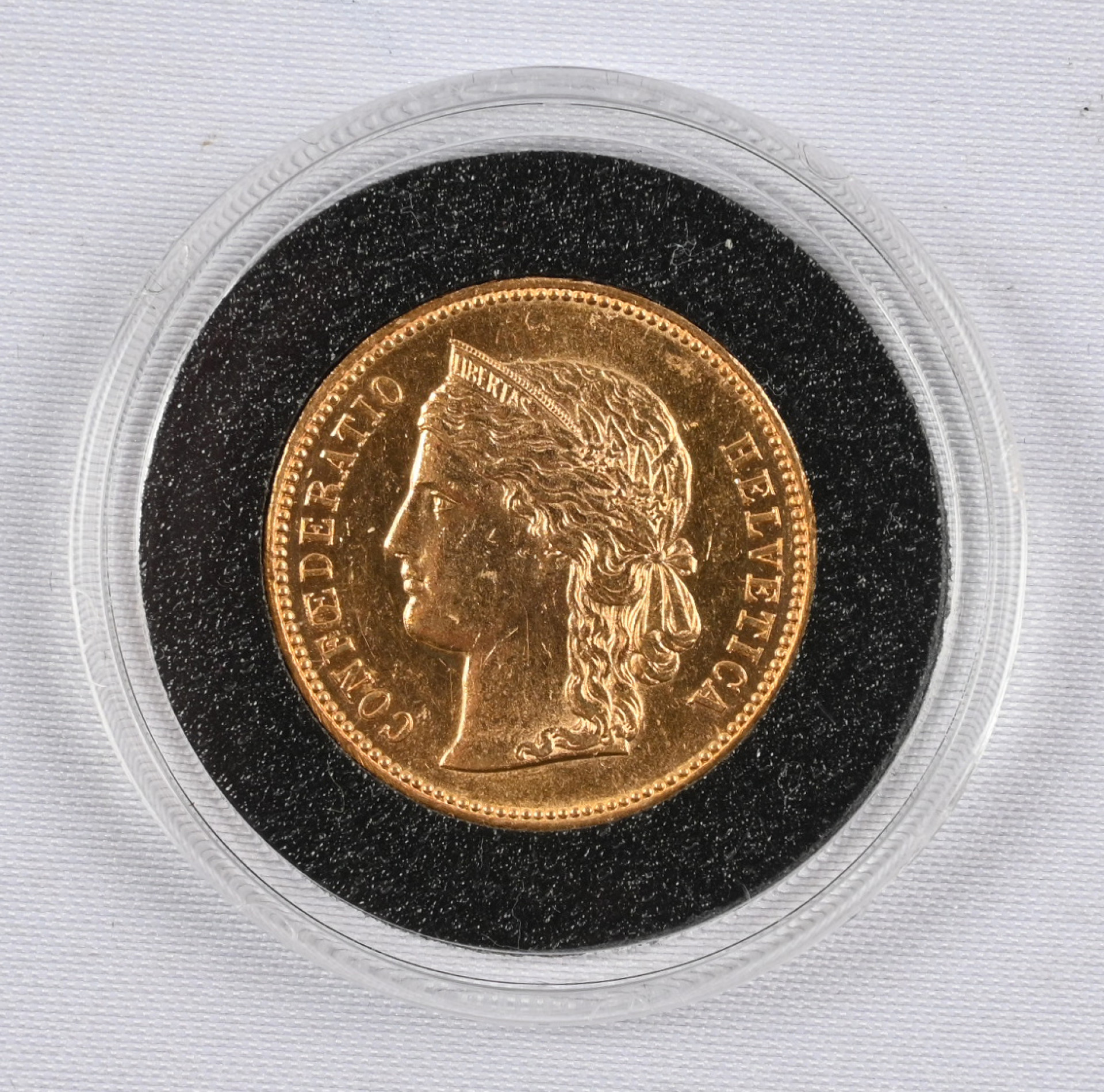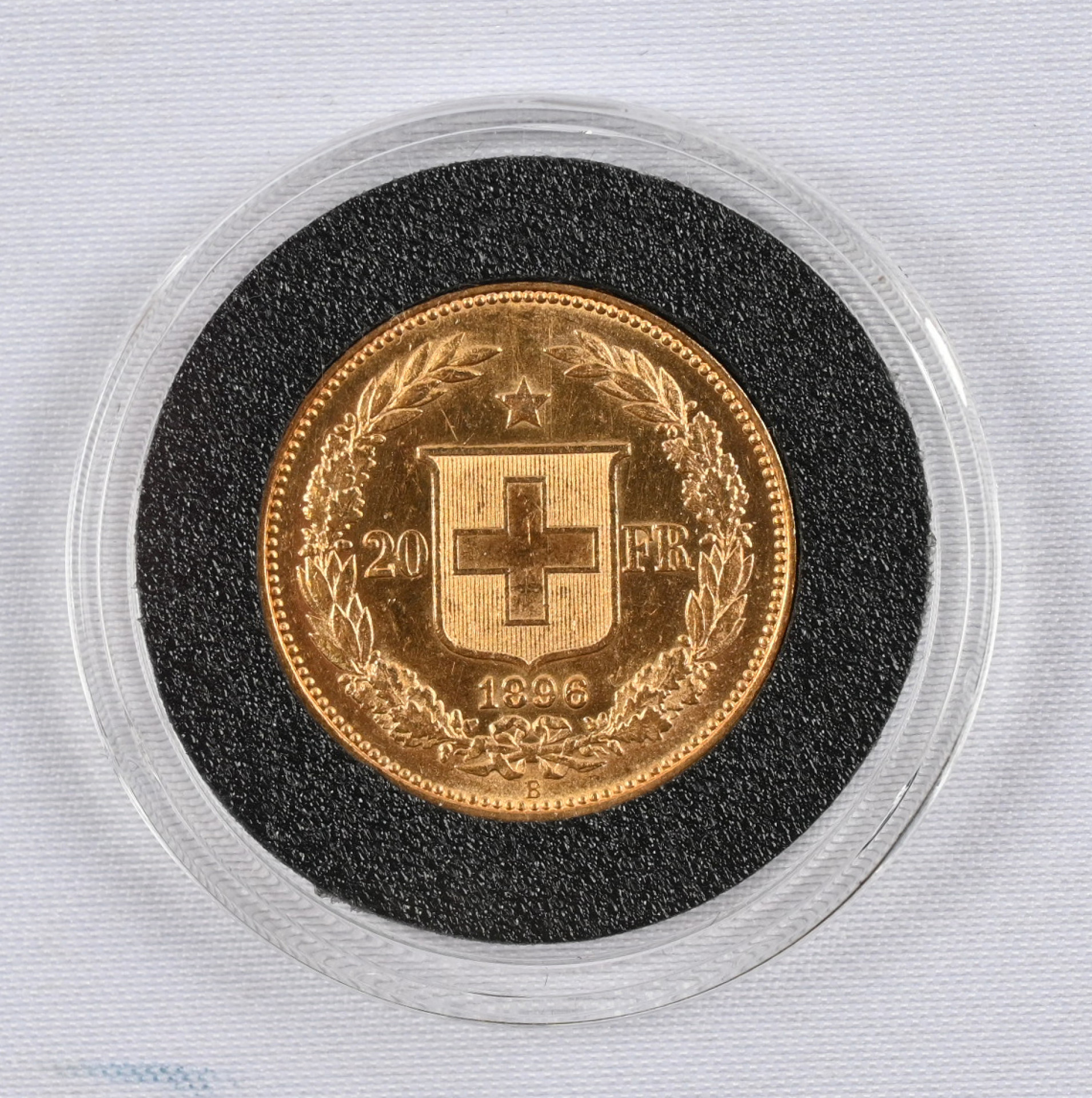Sveitsi 1896 20 frangia kultaa. Aitoustodistus