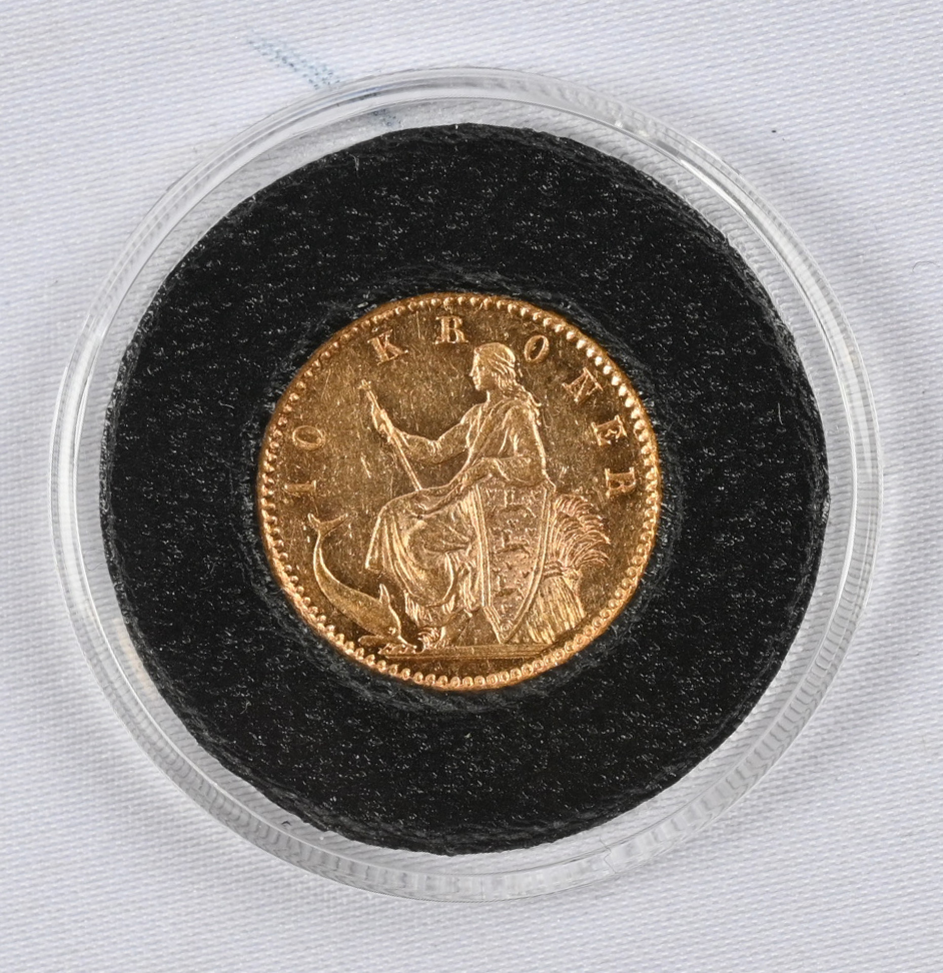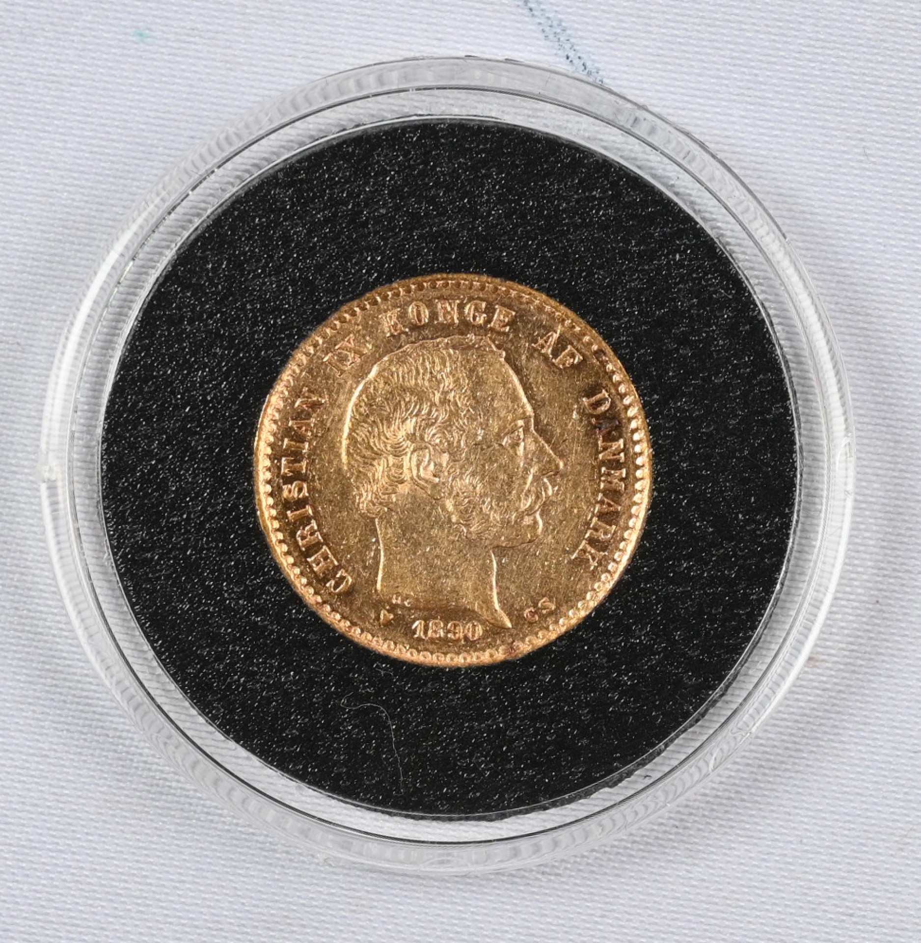 Tanska 1890 10 kruunua kultaa (4,48 g). Aitoustodistus