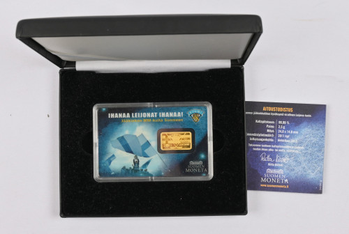 Kiekkoleijonat -kultaharkko (2,5 g). Aitoustodistus