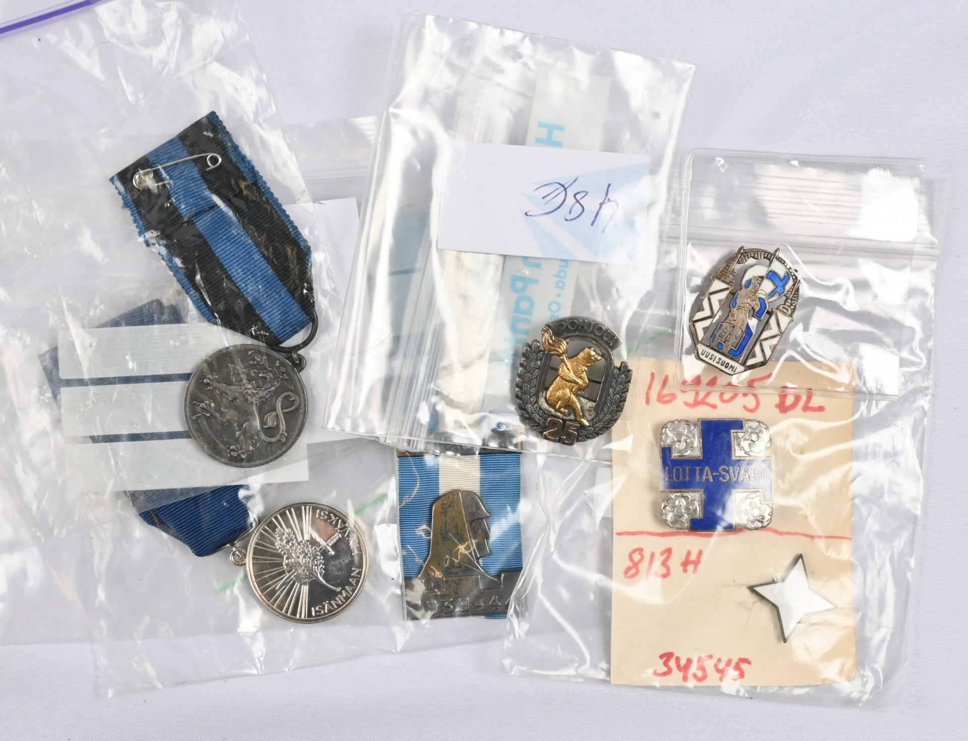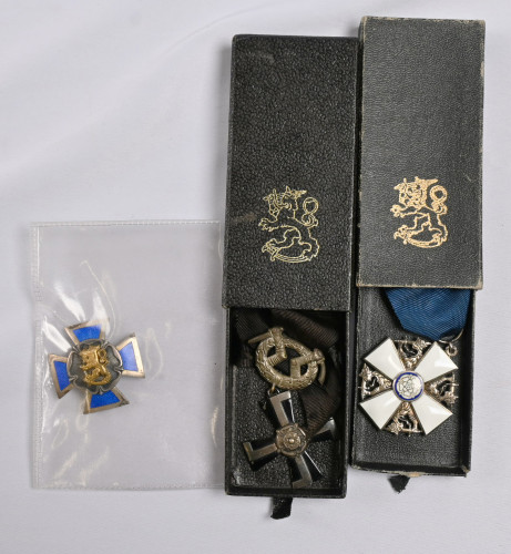 Kunniamerkkejä ym merkkejä ja hiukan muutakin numistmatiikkaa erä. Mukana myös Sarpanevan hopeiset kalvosinnapit