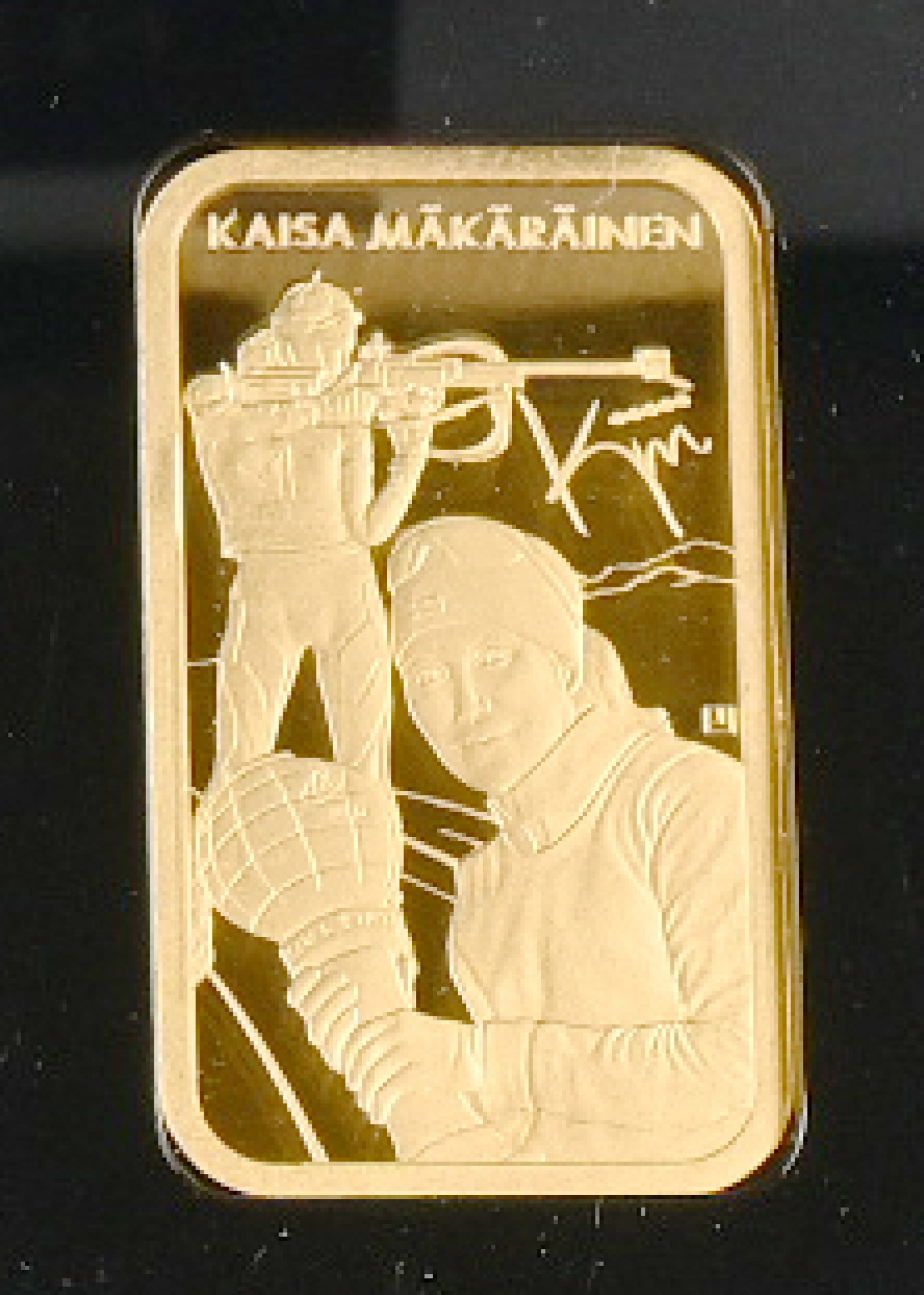 Monetan keräilyharkko: Kaisa Mäkäräinen, kultaa 2,5 g numeroitu. Tehty vain 300 kpl
