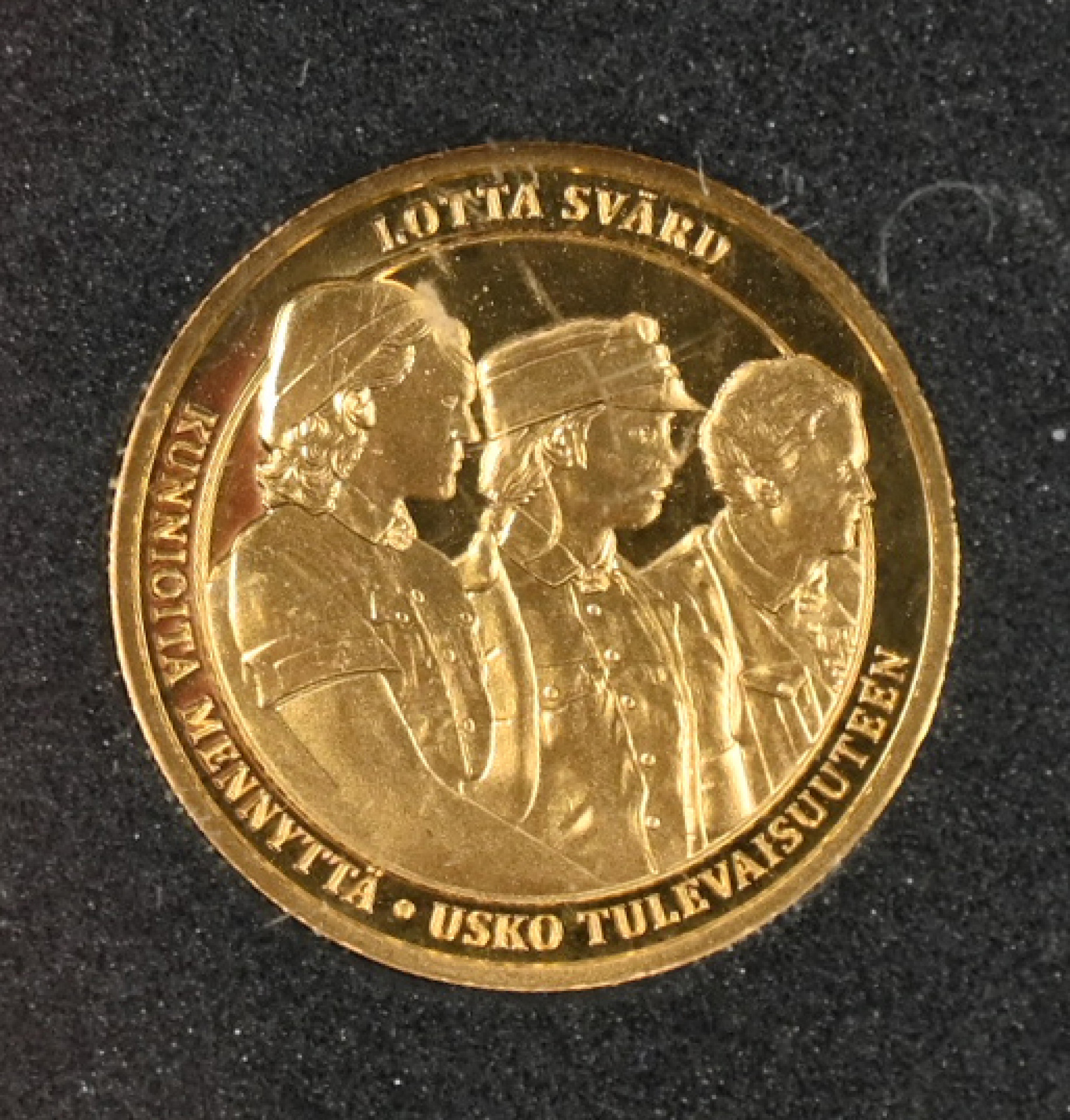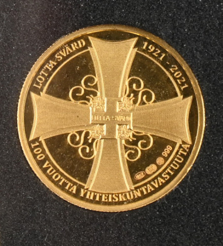 Monetan Lotta Svärd 100 vuotta kulta (999) mitali. Lyöntimäärä vain 600 kpl