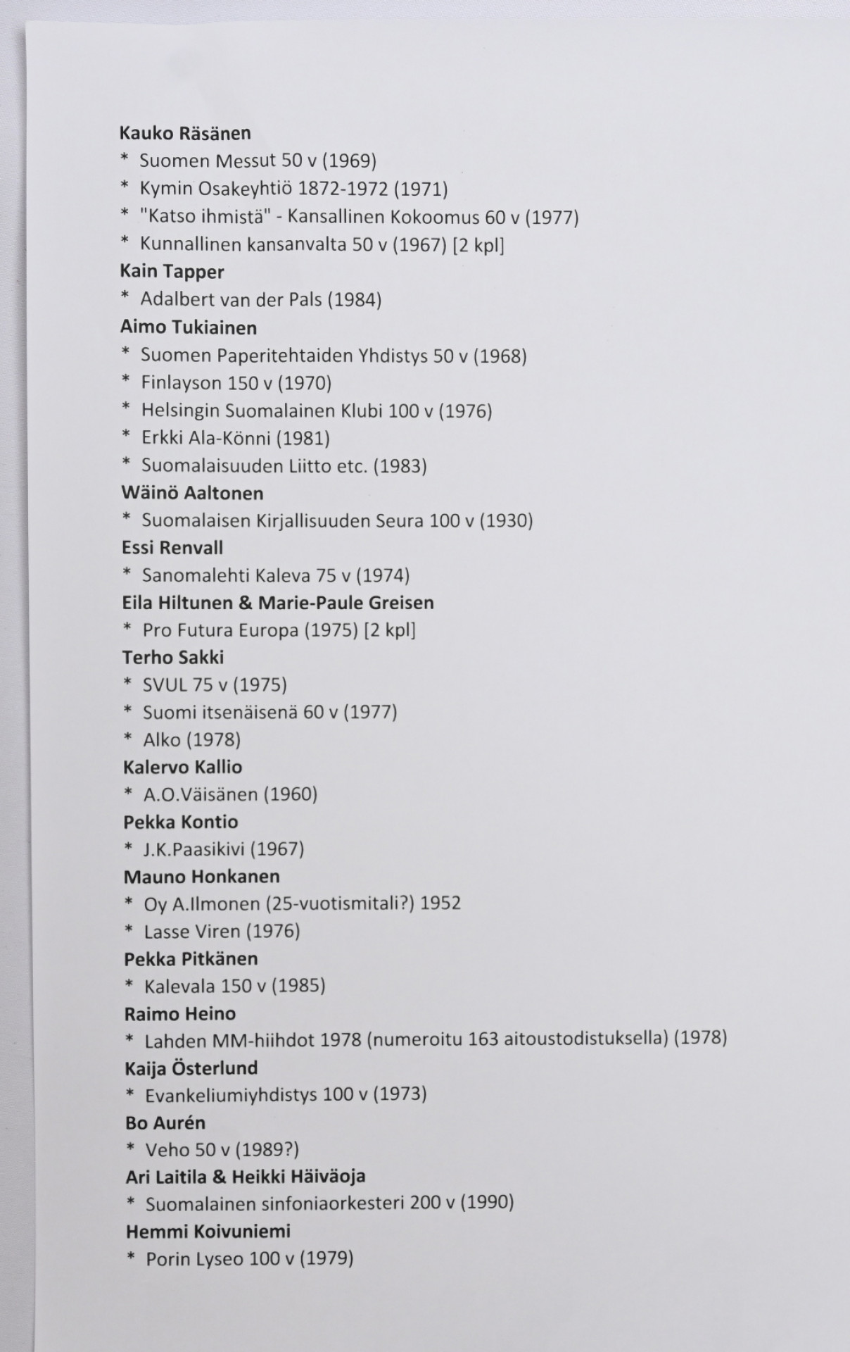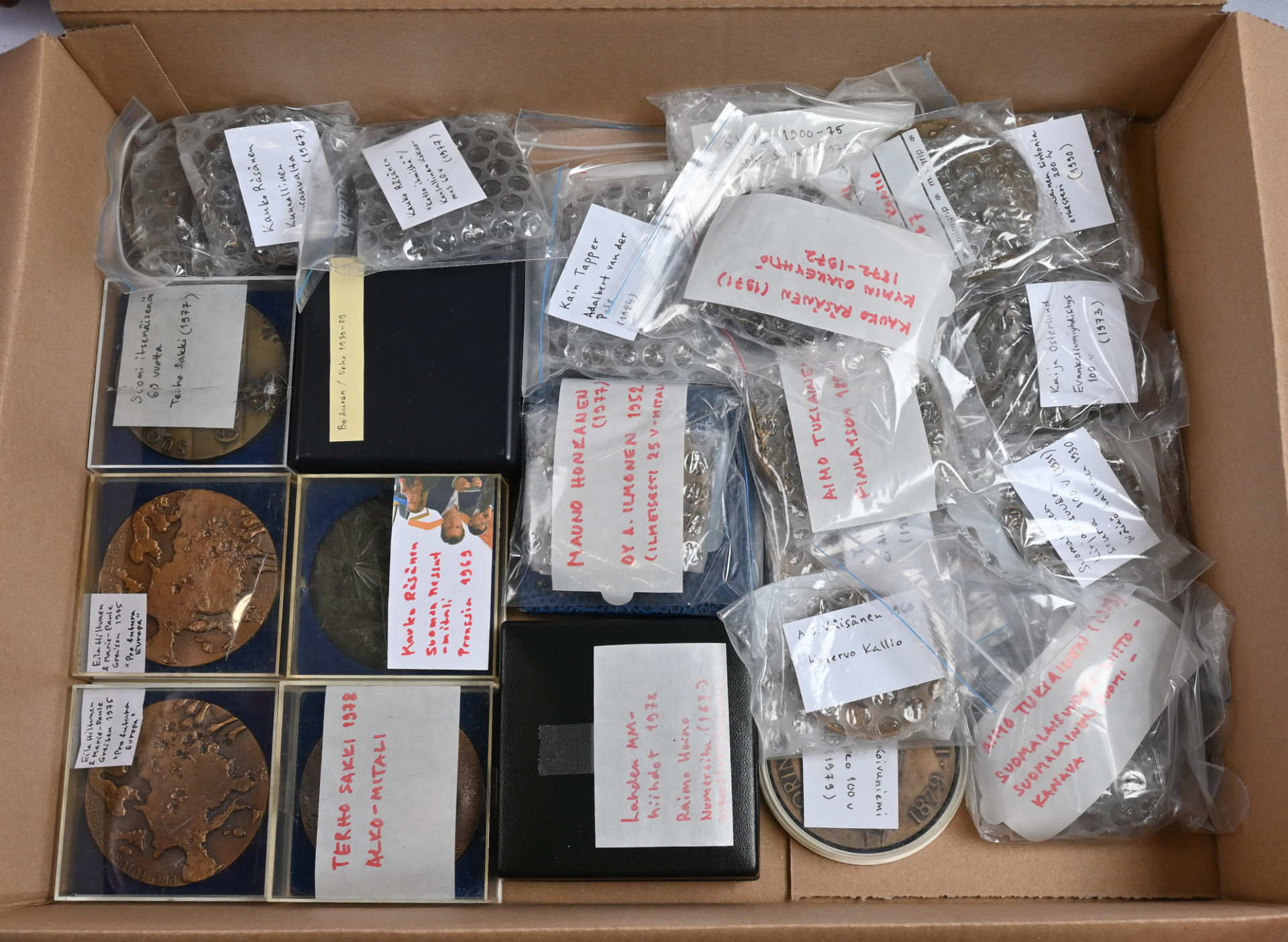 Suomalaisilta taiteilijoita hyvä erä 27 mitalia (26 erilaista), lähinnä isoja pronssisia. Monia hyviä, mm. Kauko Räsänen (4), Kain Tapper (1), Aimo Tukiainen (5, Wäinö Aaltonen (1), Essi Renvall (1), Terho Sakki (3) ym. Täydellinen listaus mukana. Hyvä erä
