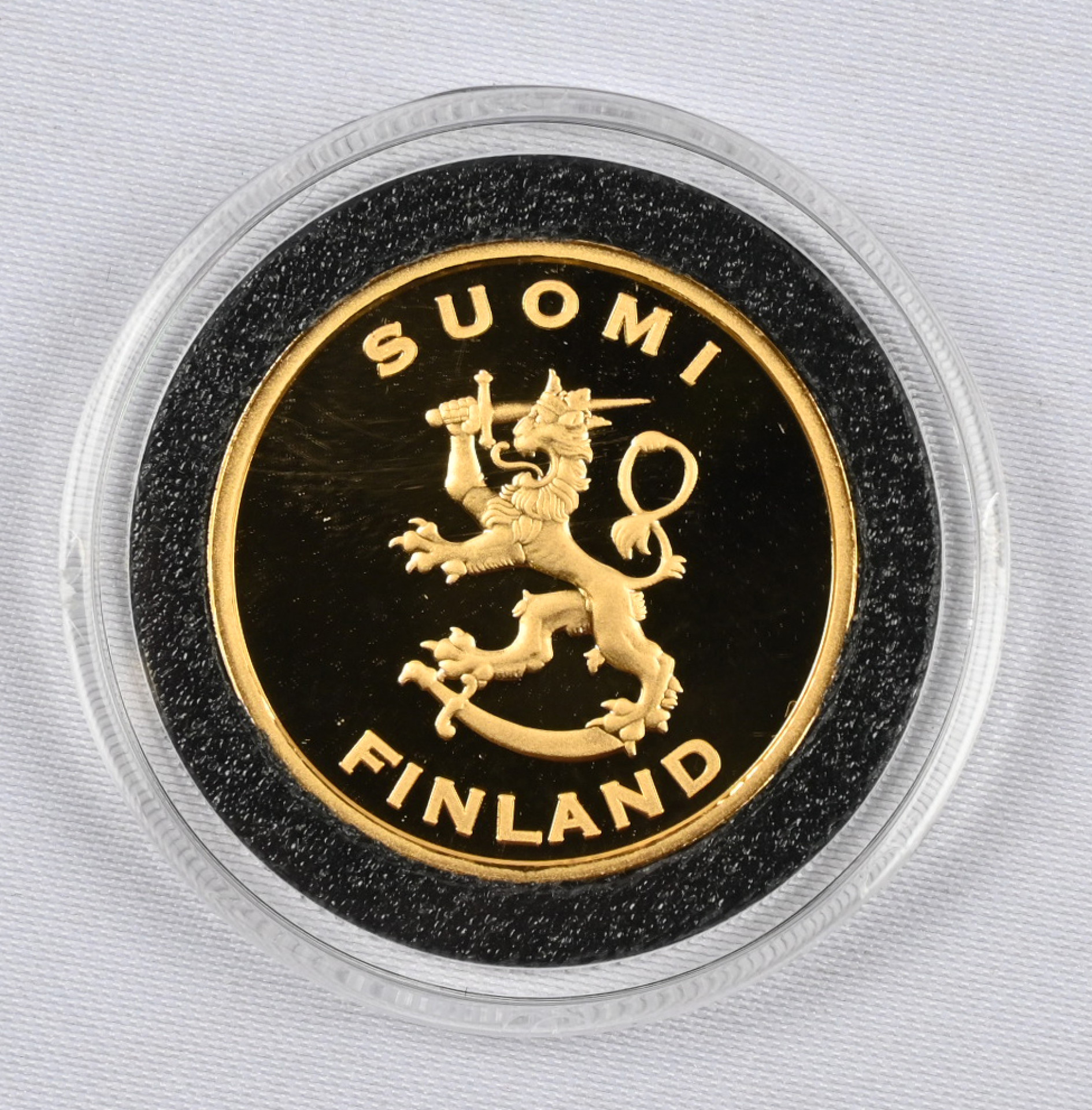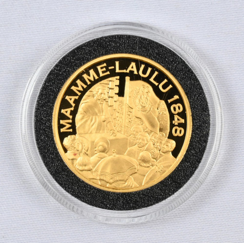 Suomen kulta-aarre, Maamme-laulu kultamitali (12,0 g). Aitoustodistus