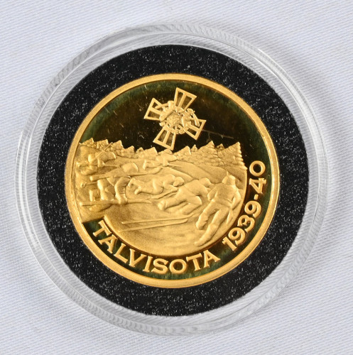 Suomen kulta-aarre, Talvisota -kultamitali (12,0 g). Aitoustodistus