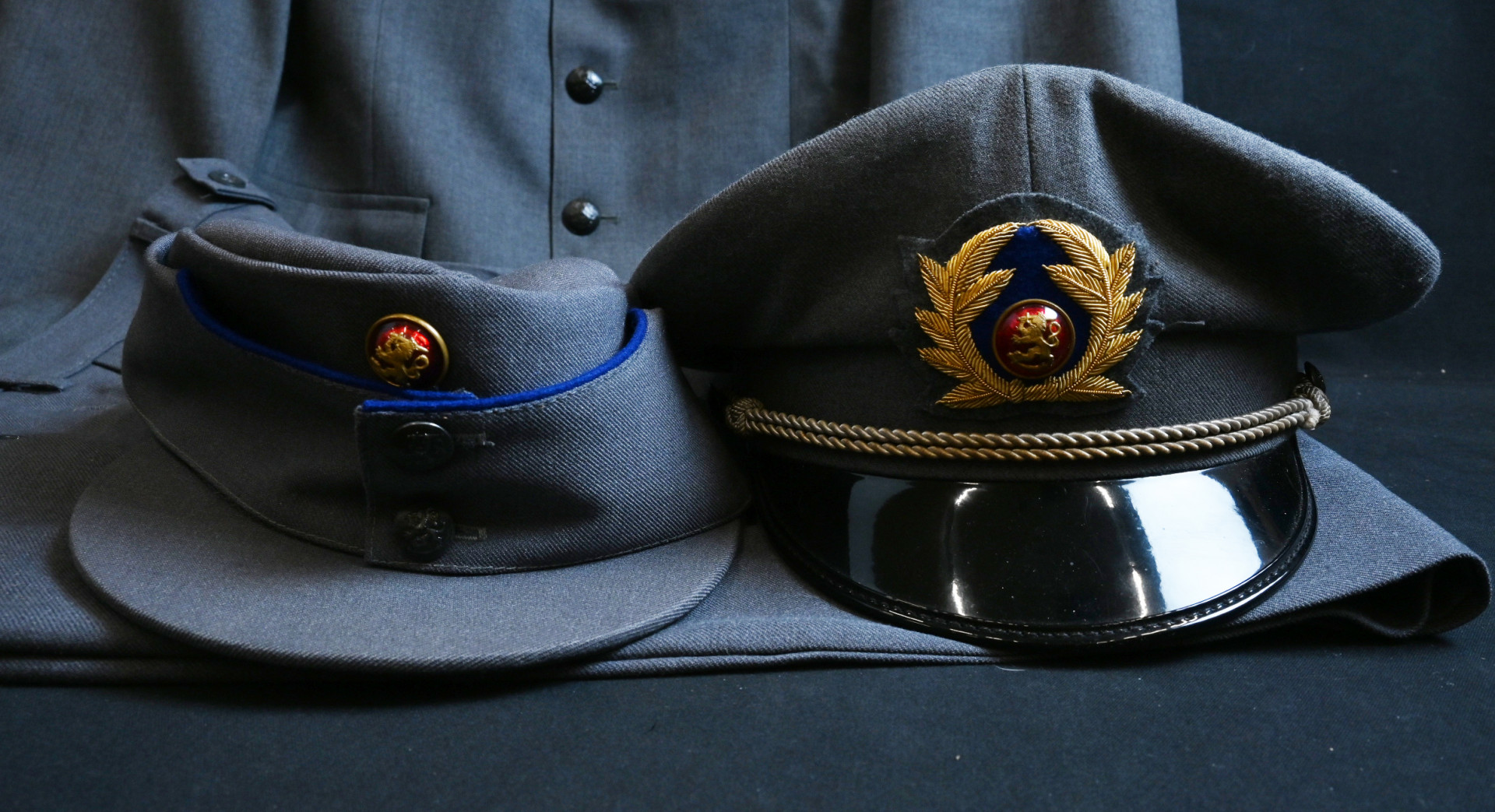 Kadetin palveluspuku m/58 ja kaksi lakkia