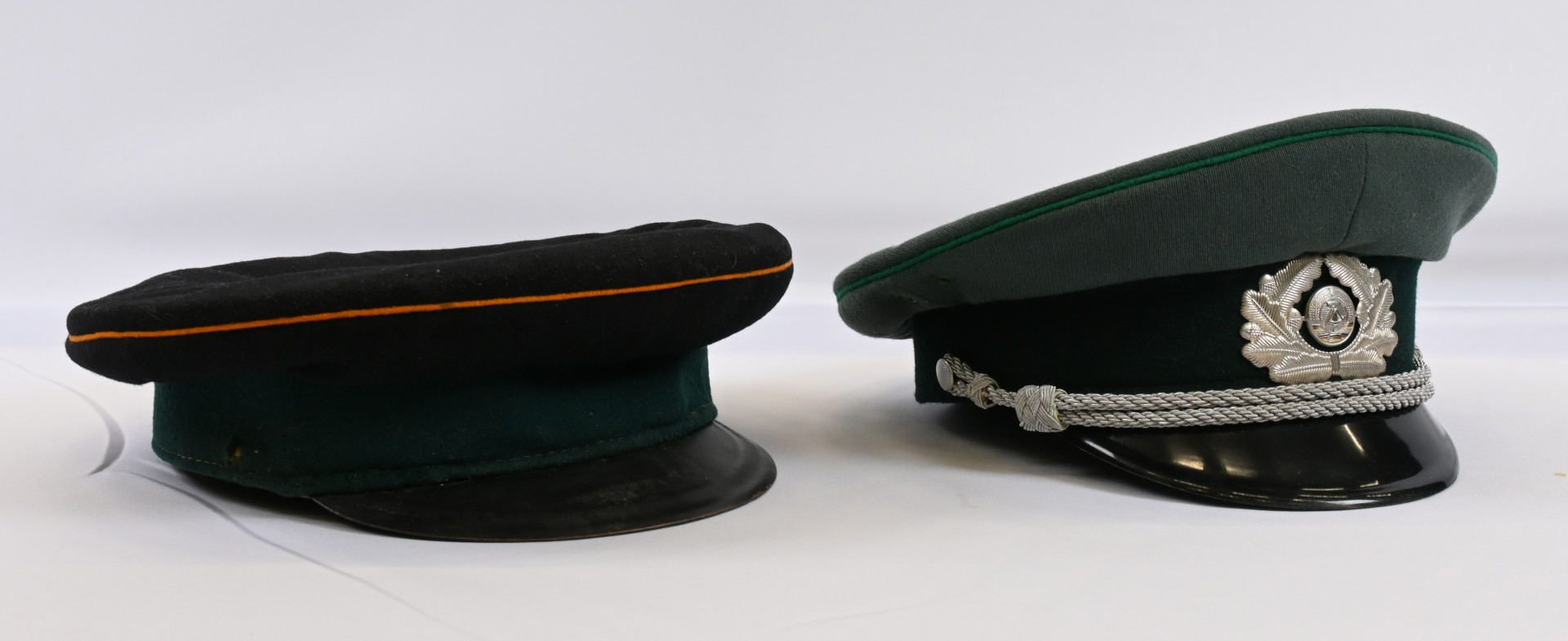 Kaksi DDR aikaista lakkia, joista toinen upseerin