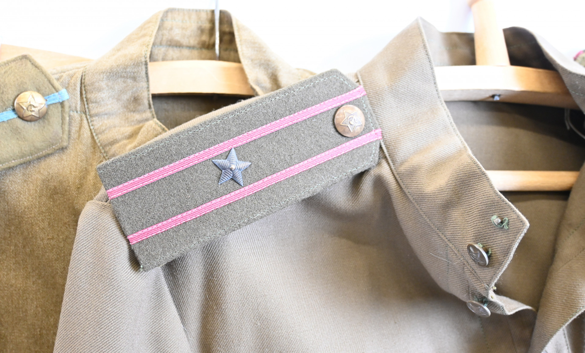 Erä, jossa yksi majurin kenttäpusero ja housut, laivaston kersantin palvelustakki ja siihen raidallinen paita, sekä ilmavoimien aliluutnantin palveluspusero.