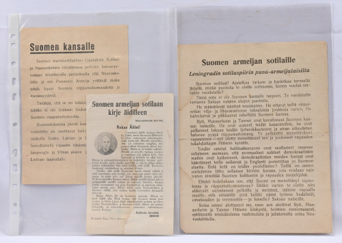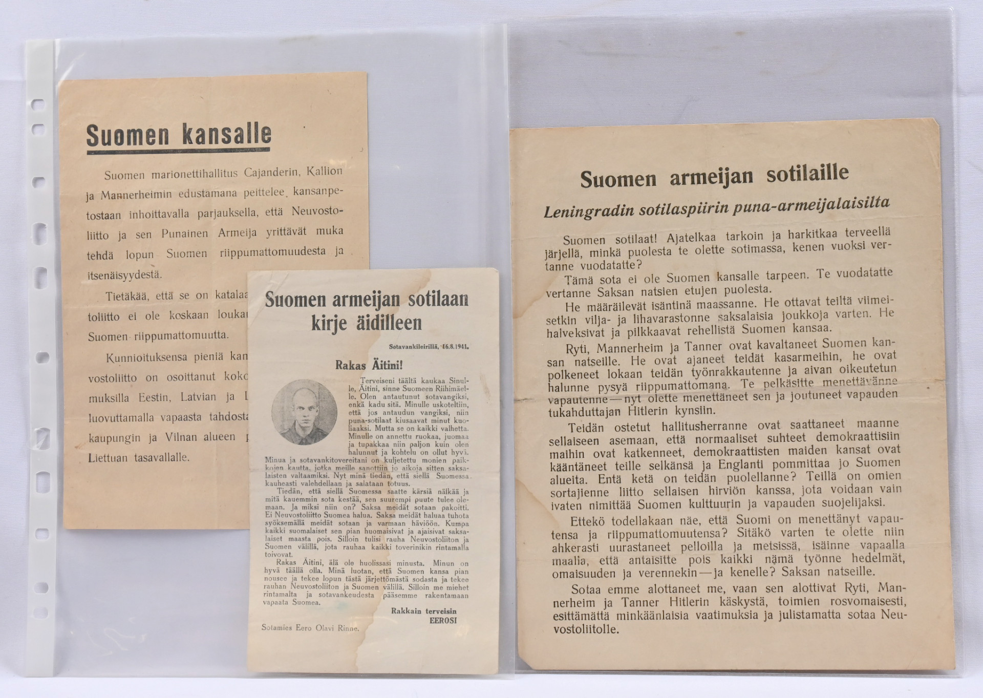 Lentolehtisiä jatkosodan ajalta viisi erilaista. Osin tahraa ja ajan patinaa