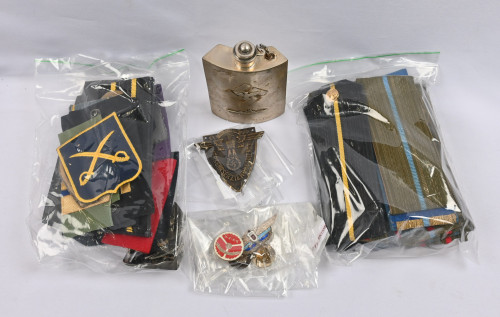 Vanhoja ilmeisesti jälkituotantoa olevia esineitä hakaristein lisäksi erä venäläisiä olkapoletteja ym