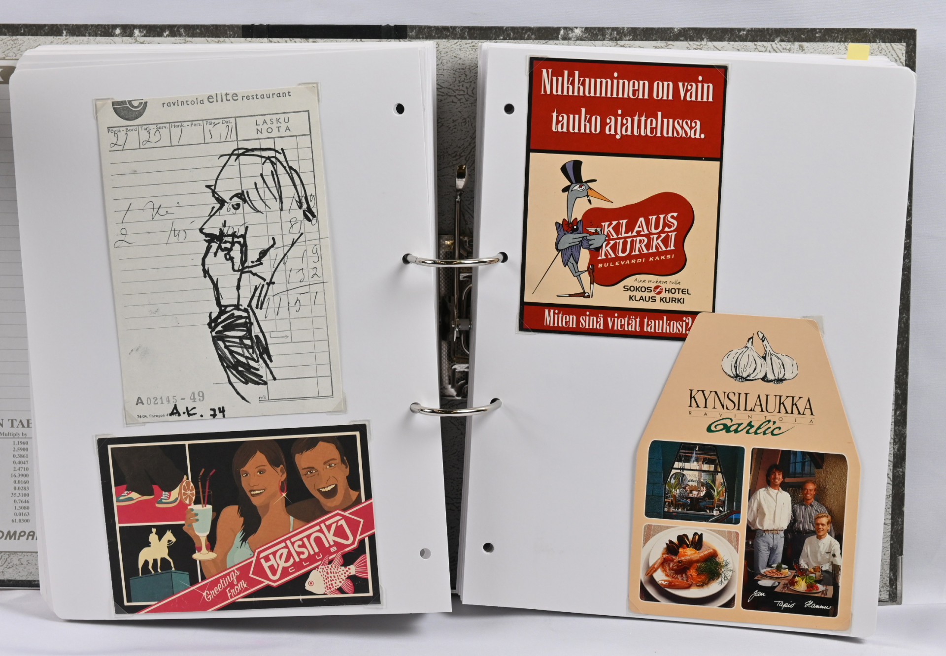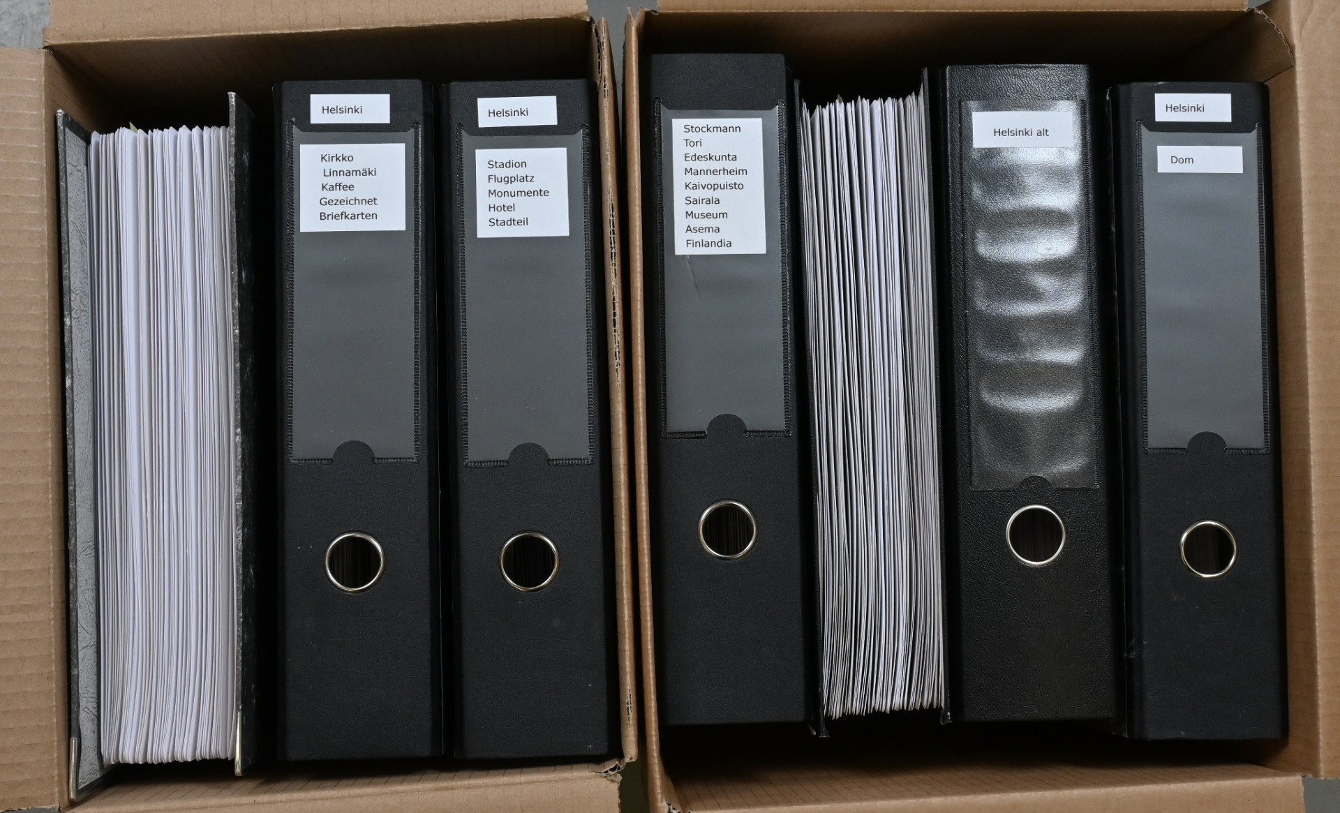 Helsinki kokoelma sivuilla montteerattuna seitsemässä kansiossa painottuen uudempaan materiaaliin. Yht. noin 19 KG