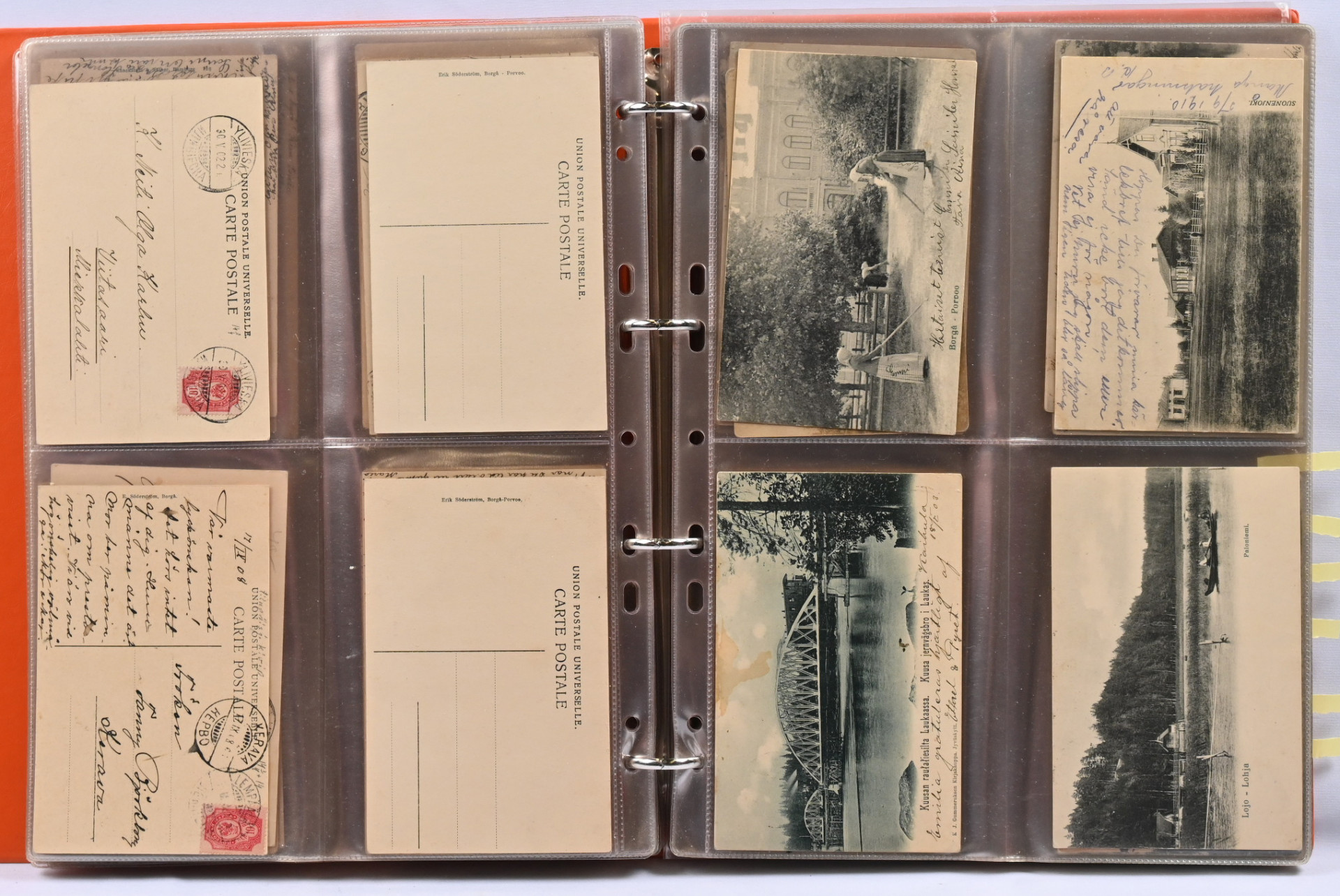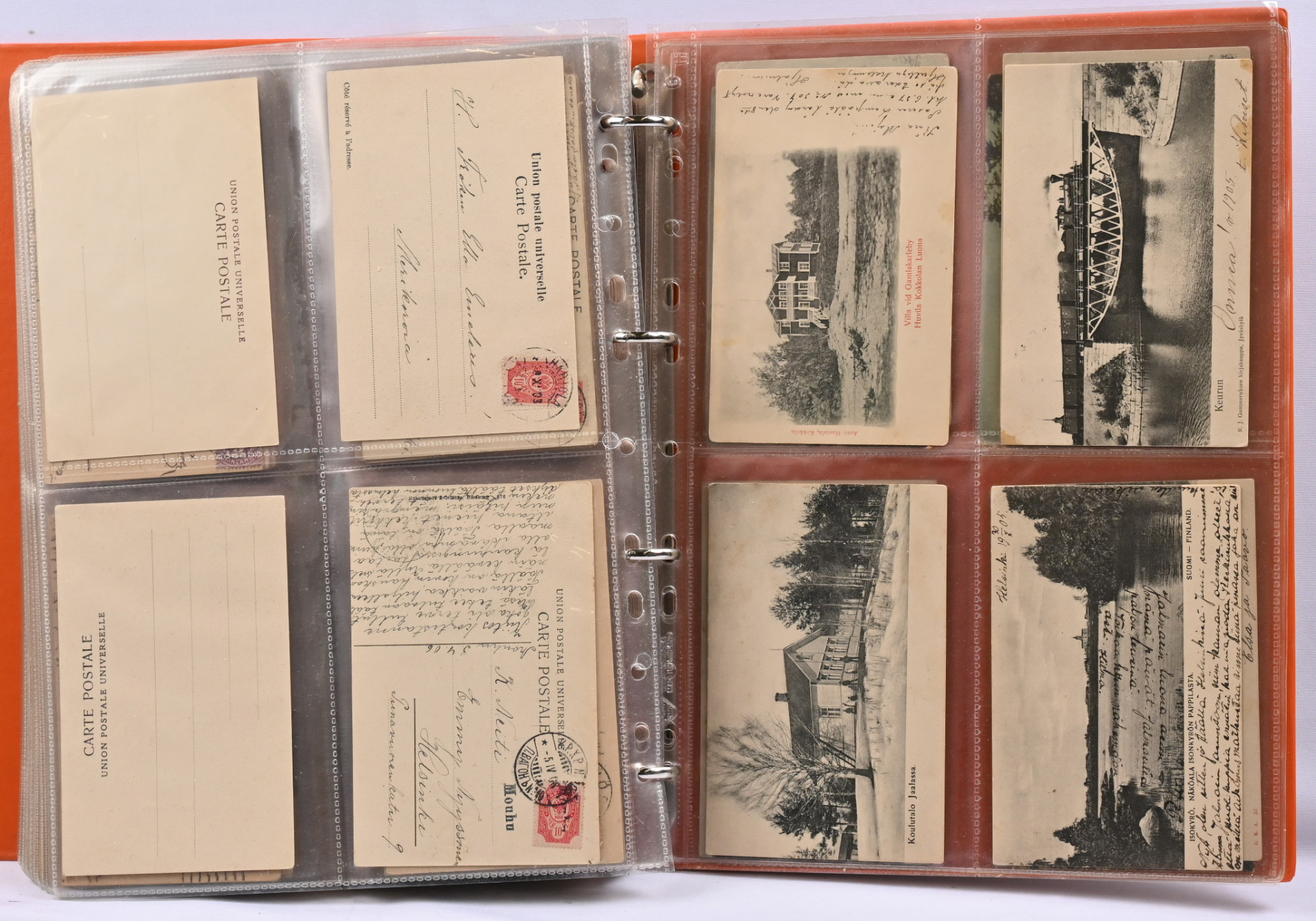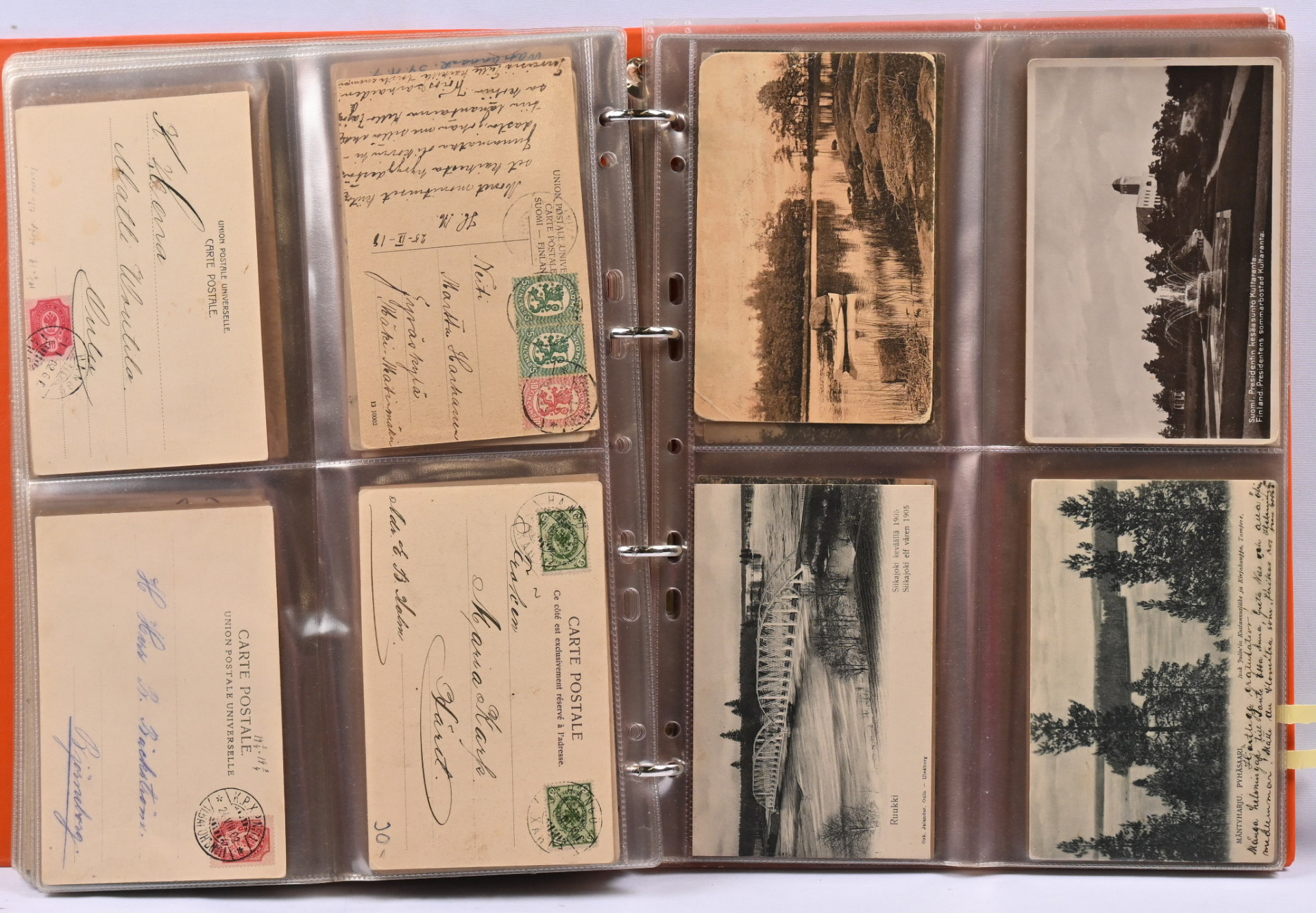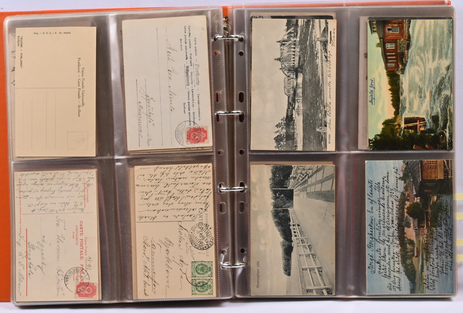 Vanhoja paikkakuntakortteja noin 150 kappaletta kansiossa. Monipuolinen valikoima eri paikkakuntia mm. Siuro, Seinäjoki, Tammela, Hanko, Kajaani, Kuopio, Raahe, Savonlinna jne