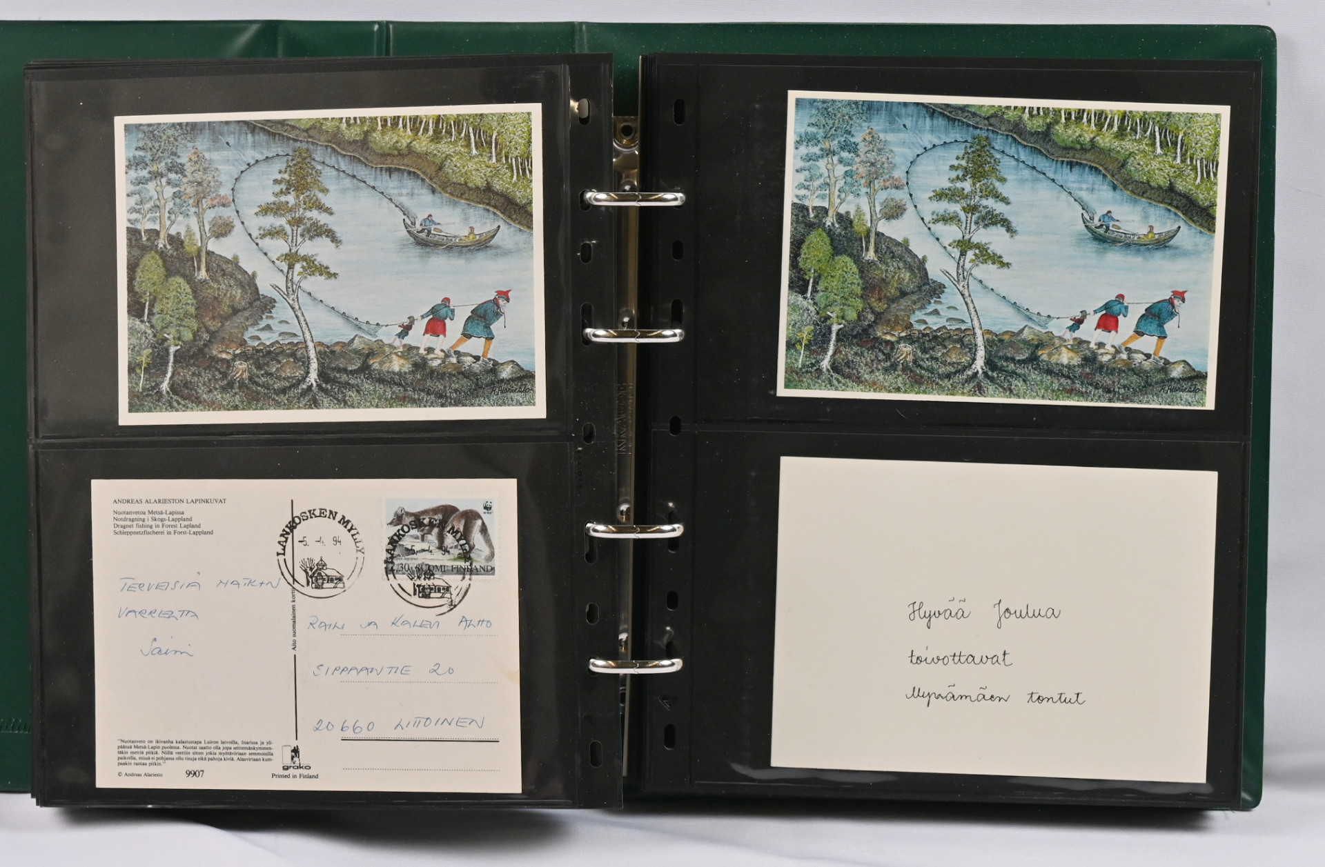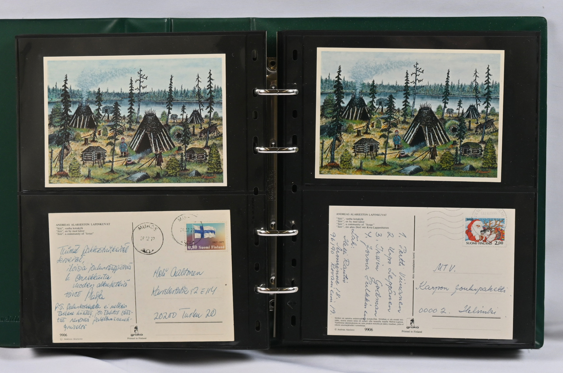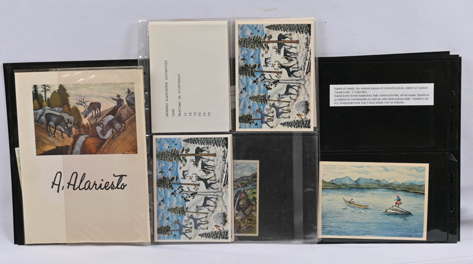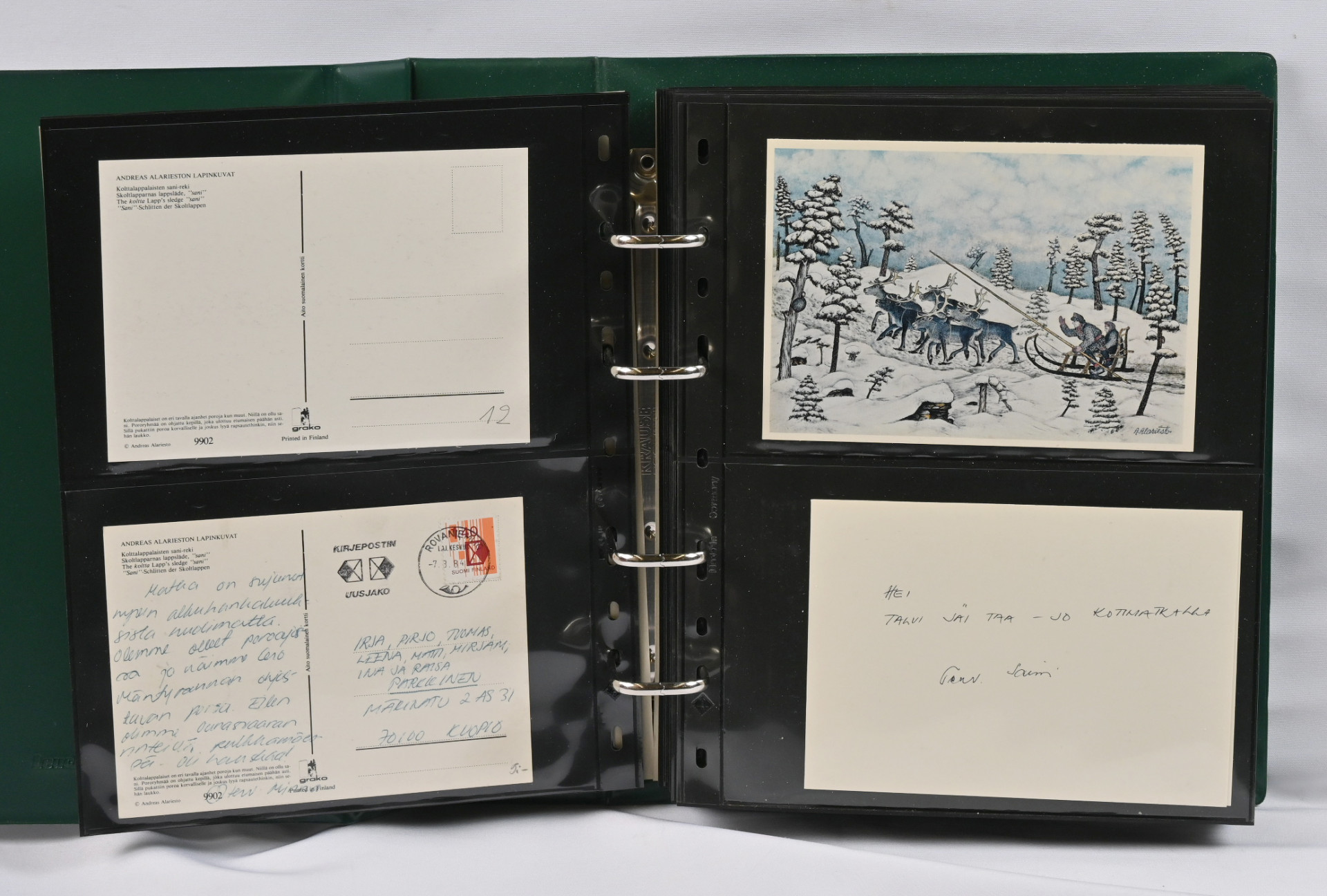 Alariesto Andreas, postikorttikokoelma neljässä albumissa, monet kortit kerätty sekä kulkeneina että käyttämättöminä. Lisäksi hiukan postikortteja varastosivuilla sekä irrallaan, lehtileikkeitä, kirjallisuutta ym.